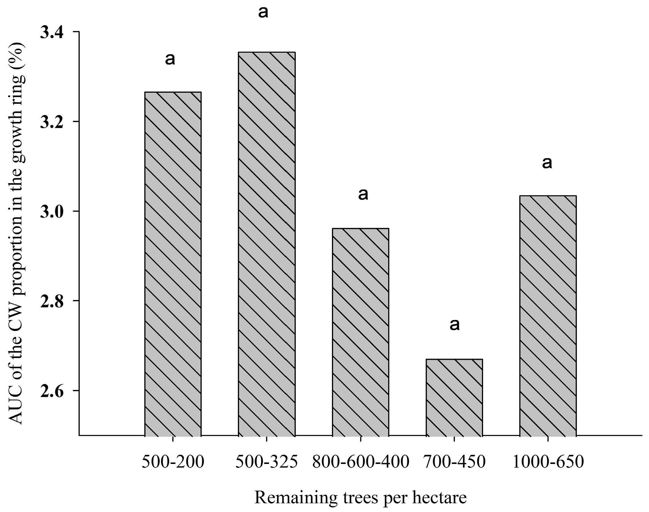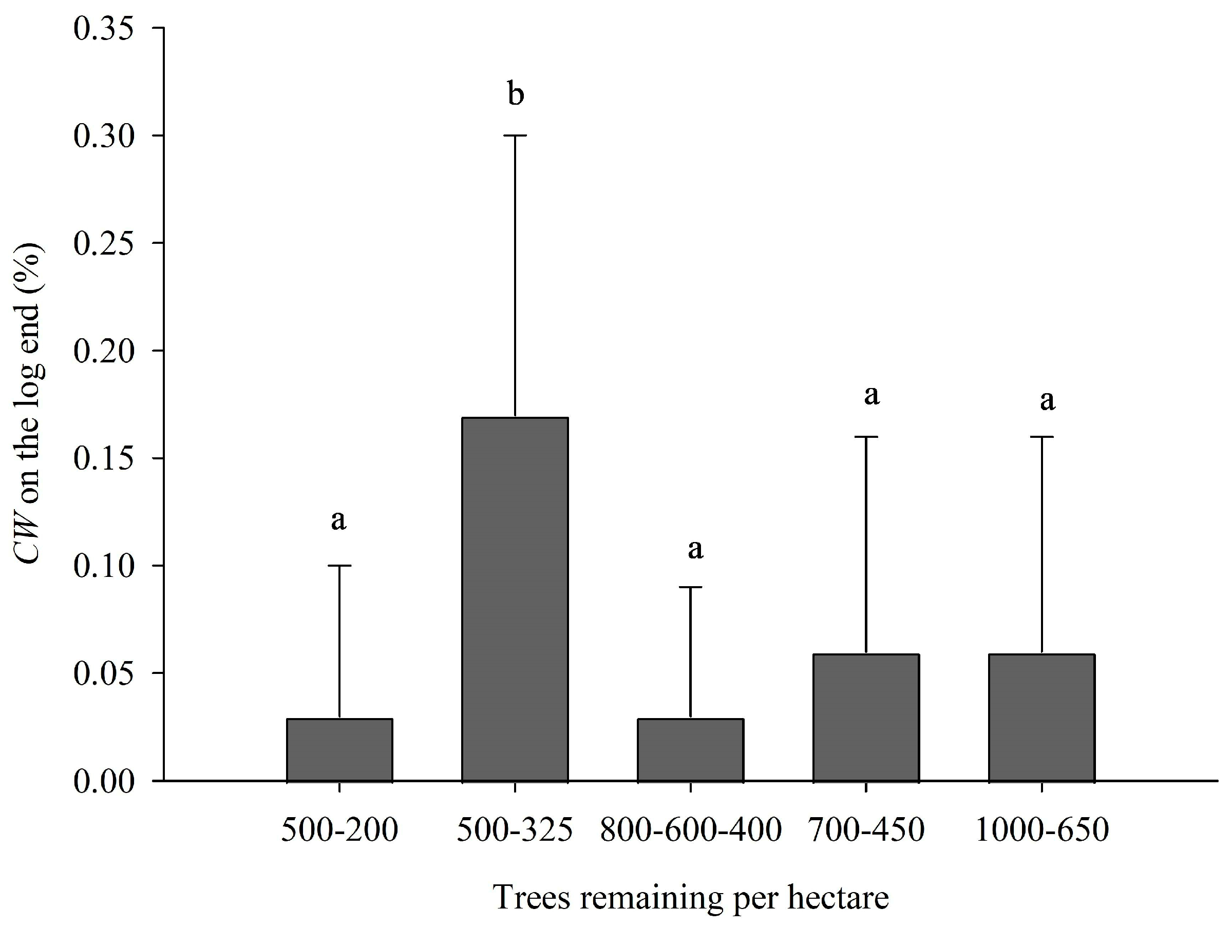 4.2. Influence of Thinning Intensity and Timing on CW Formation