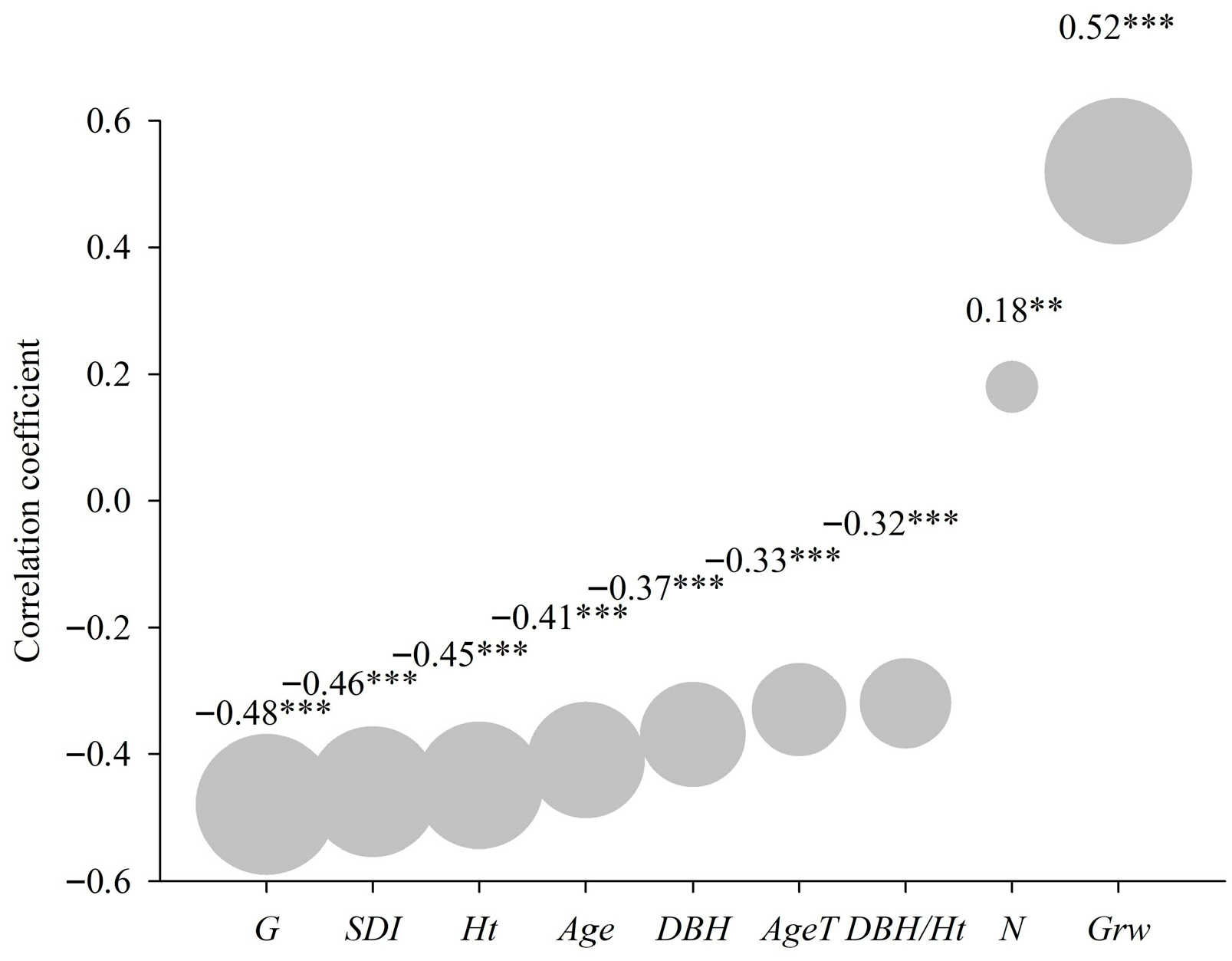 3.3. Relationship of Dasometric and Silvicultural Variables with CW at the Growth Ring Level