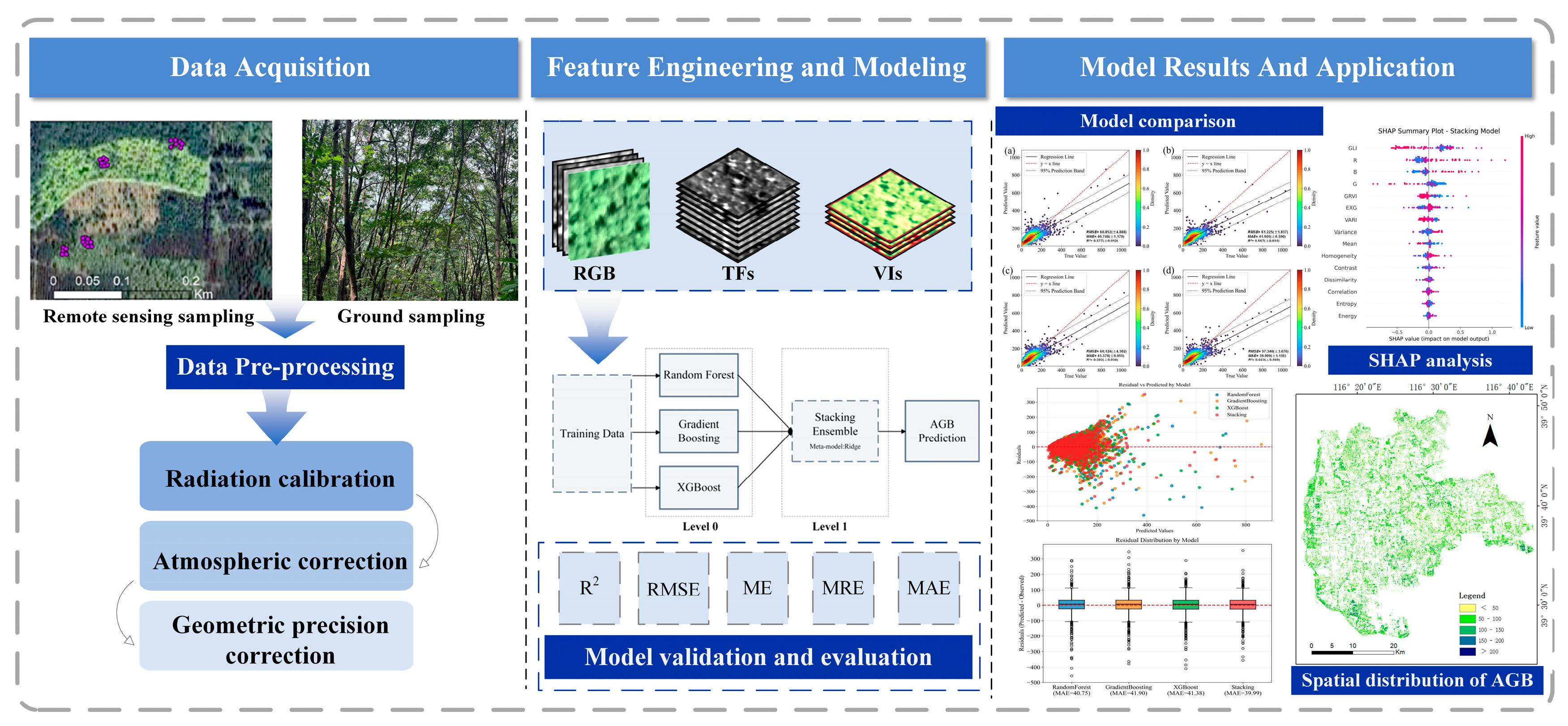 APA StyleLiu, J., Liu, M., Shen, T., Yan, F., & Zhou, Z. (2025). Forest Aboveground Biomass Estimation Using High-Resolution Imagery and Integrated Machine Learning. Forests, 16(12), 1777. https://doi.org/10.3390/f16121777