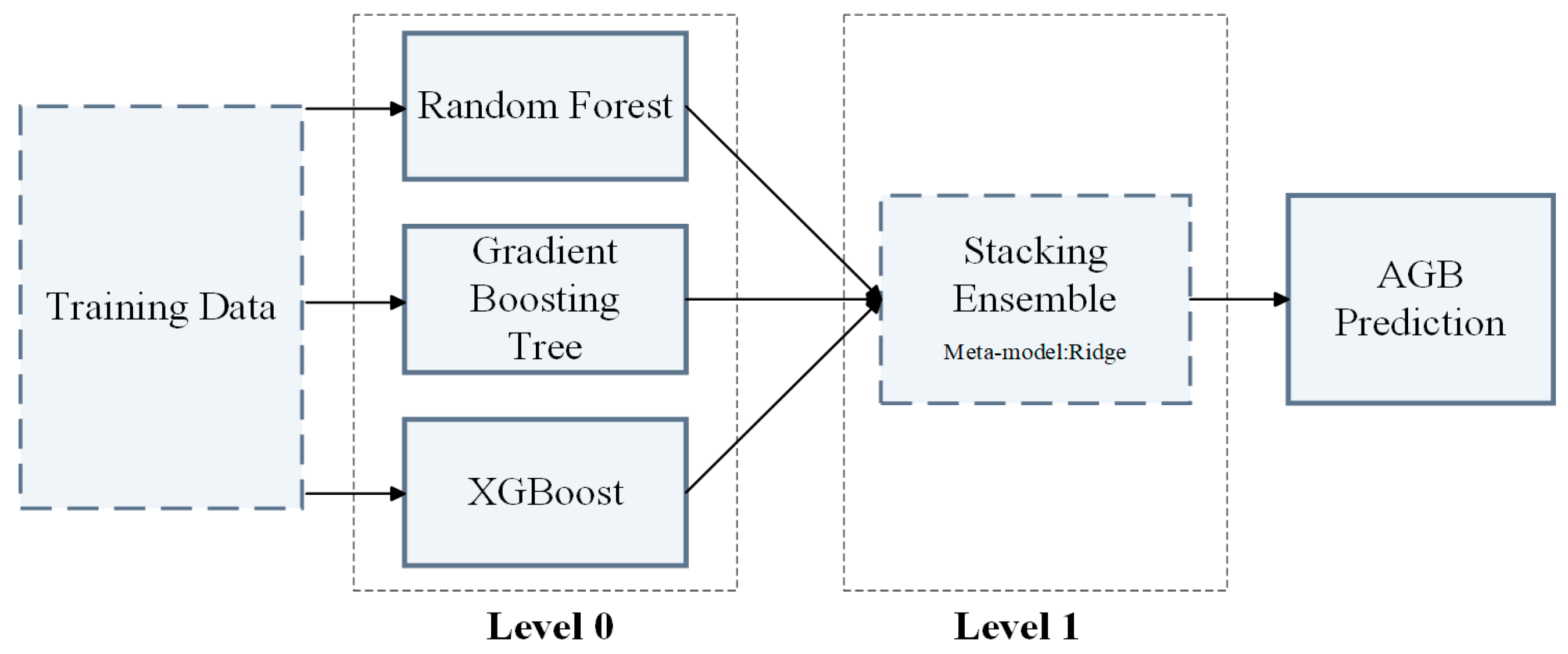 - Zhang, Y.; Ma, J.; Liang, S.; Li, X.; Liu, J. A Stacking Ensemble Algorithm for Improving the Biases of Forest Aboveground Biomass Estimations from Multiple Remotely Sensed Datasets. GIScience Remote Sens. 2022, 59, 234–249. [Google Scholar] [CrossRef]