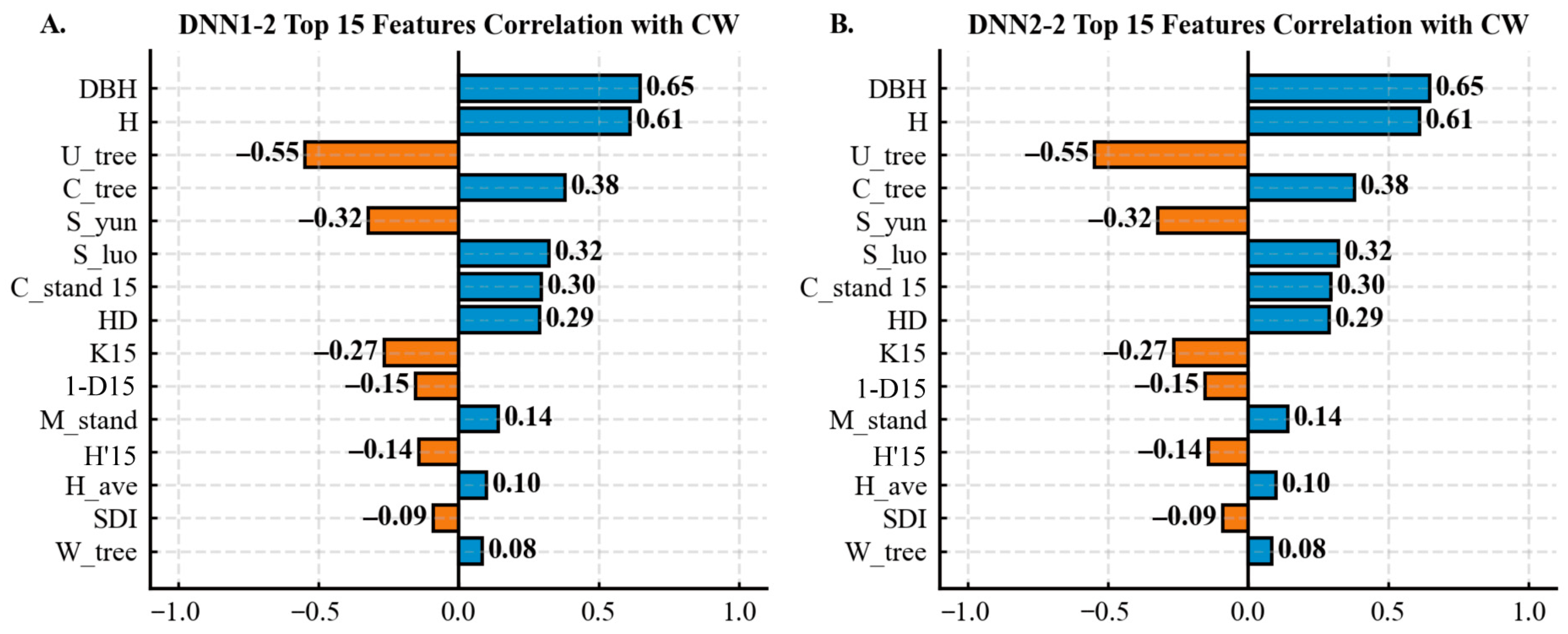 3.2. Effect of Different Input Variables on Tree CW Prediction