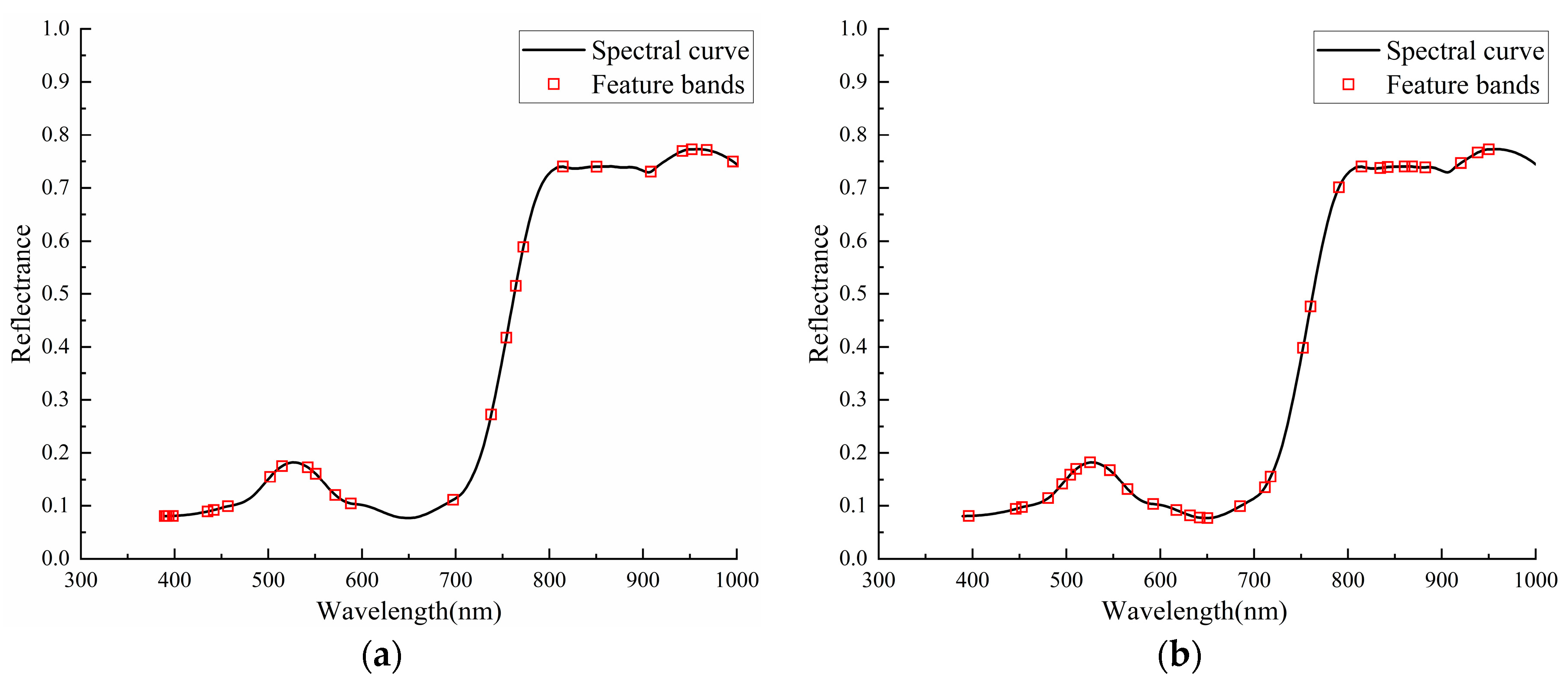 2.4.2. Hyperspectral Data Processing and Feature Band Selection