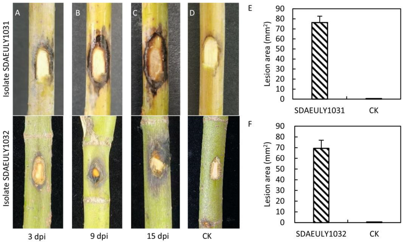 3.1. Symptom Description and Morphological Characteristics