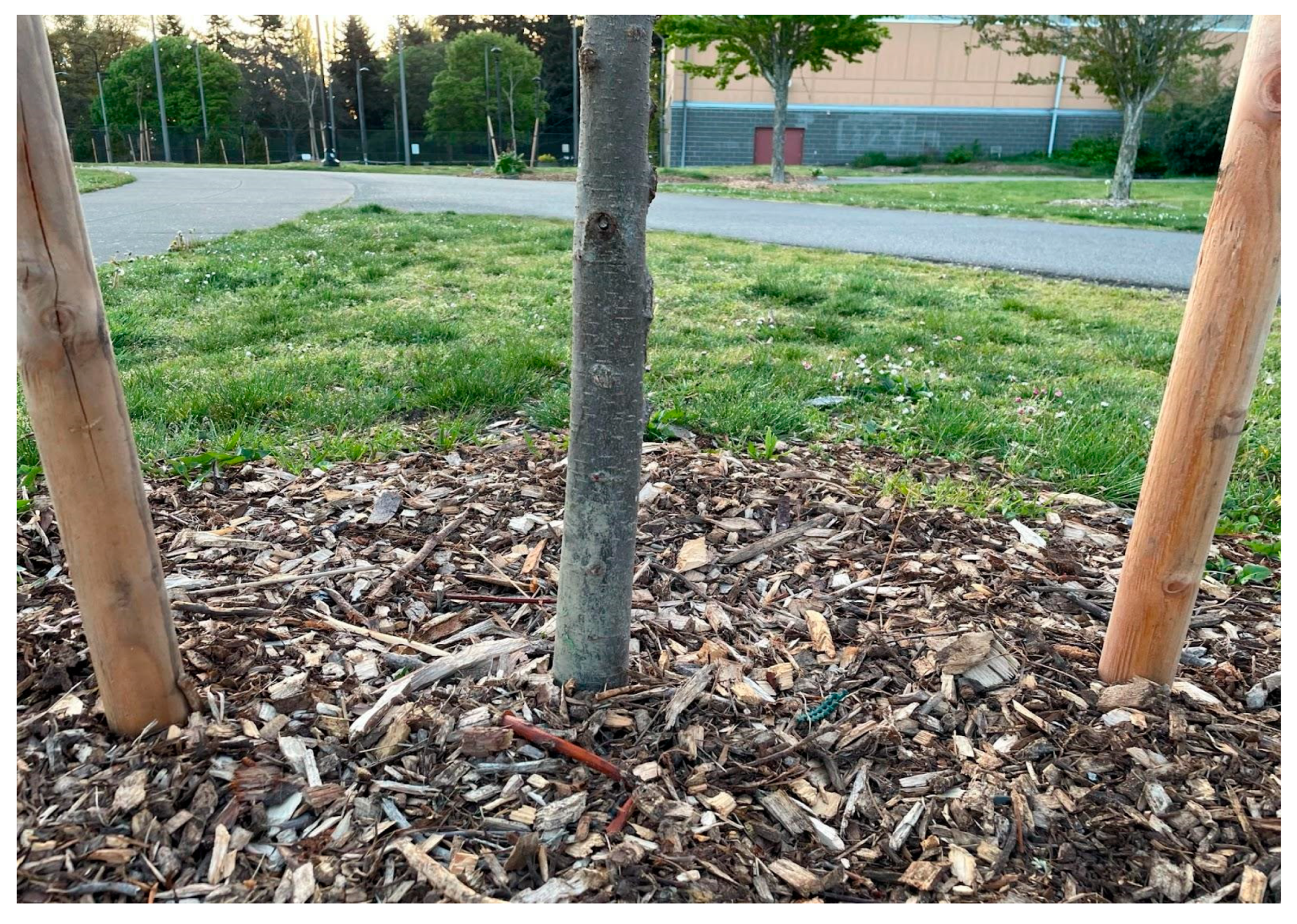 - Wattenhofer, D.J.; Johnson, G.R. Understanding Why Young Urban Trees Die Can Improve Future Success. Urban For. Urban Green. 2021, 64, 127247. [Google Scholar] [CrossRef]