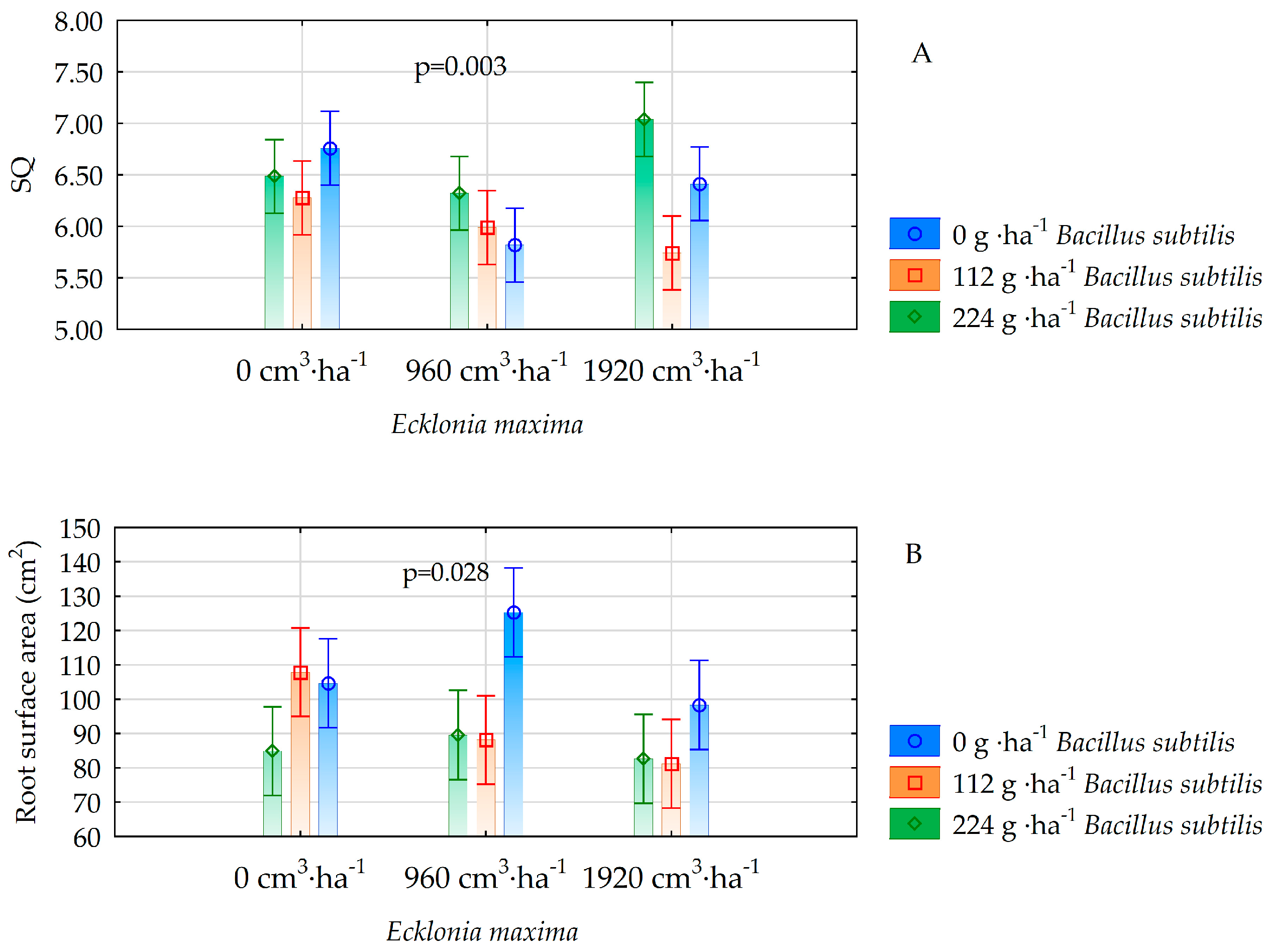 | Features | Ecklonia maxima | Bacillus subtilis | ||||||