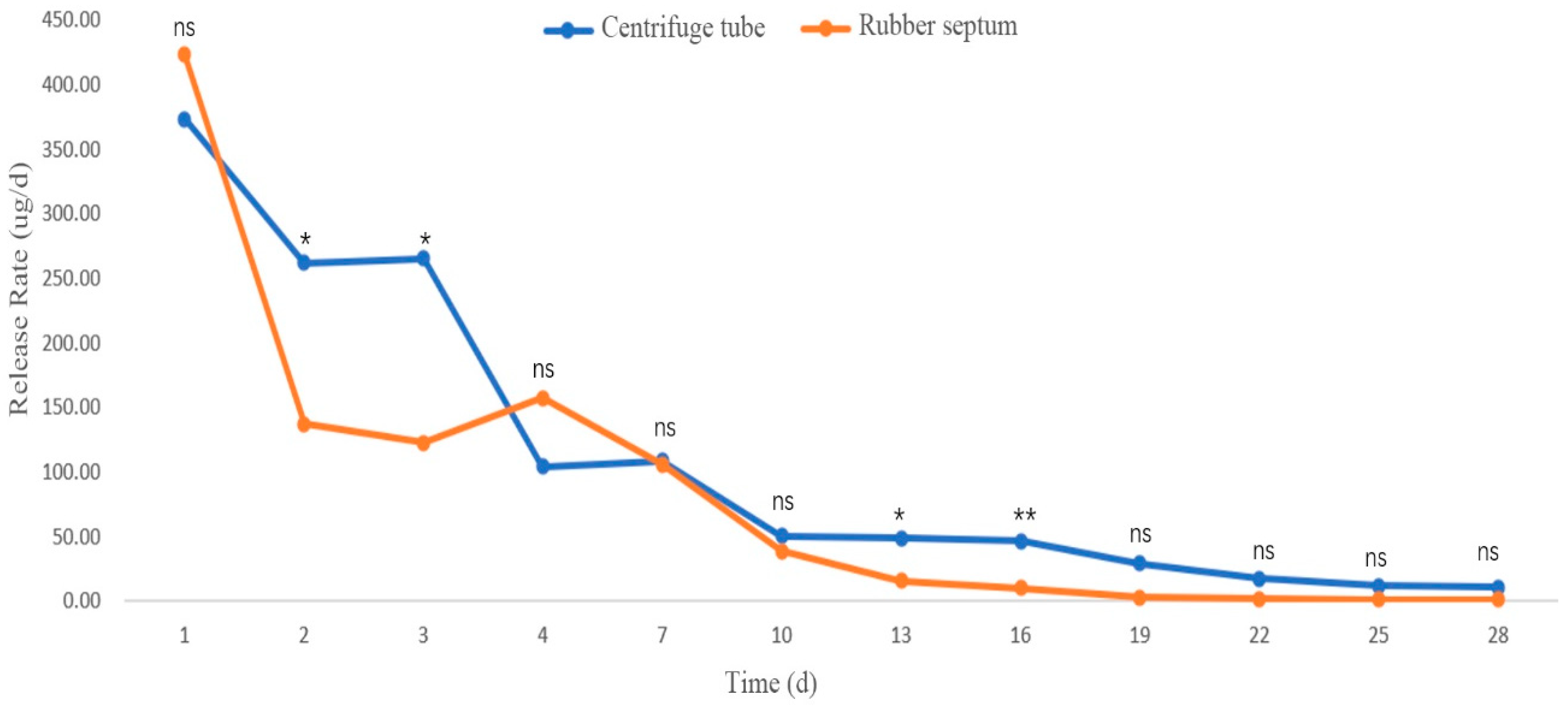2.4. Selection of Slow-Release Carriers for Attractant Application in Forest