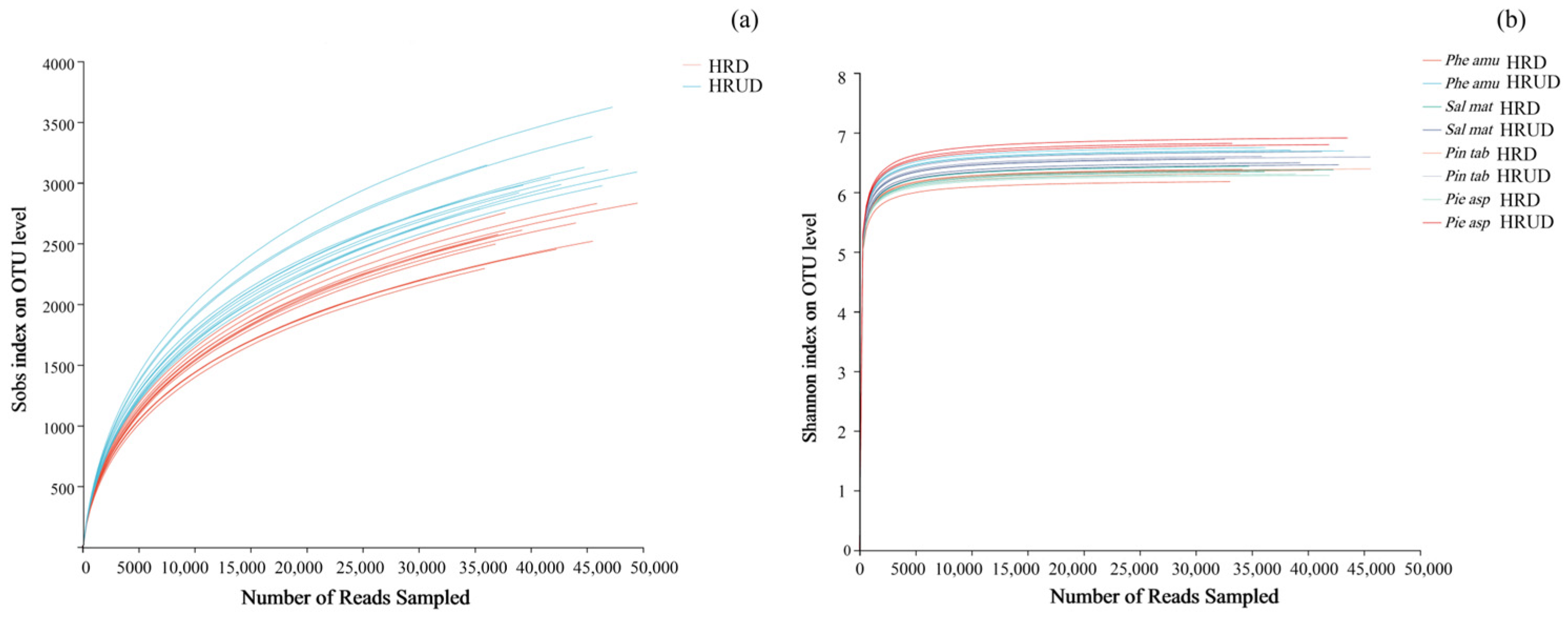 3.2.1. Analysis of Dilution Curves and Shannon Wiener Curves at OTU Levels