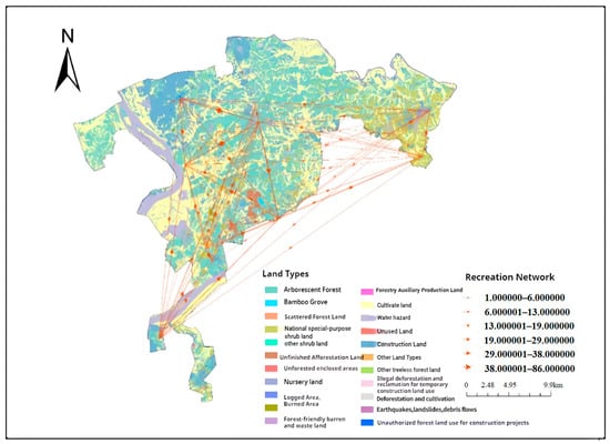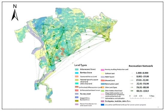 3.3. Visualization Construction and Analysis of Forest Recreation Network