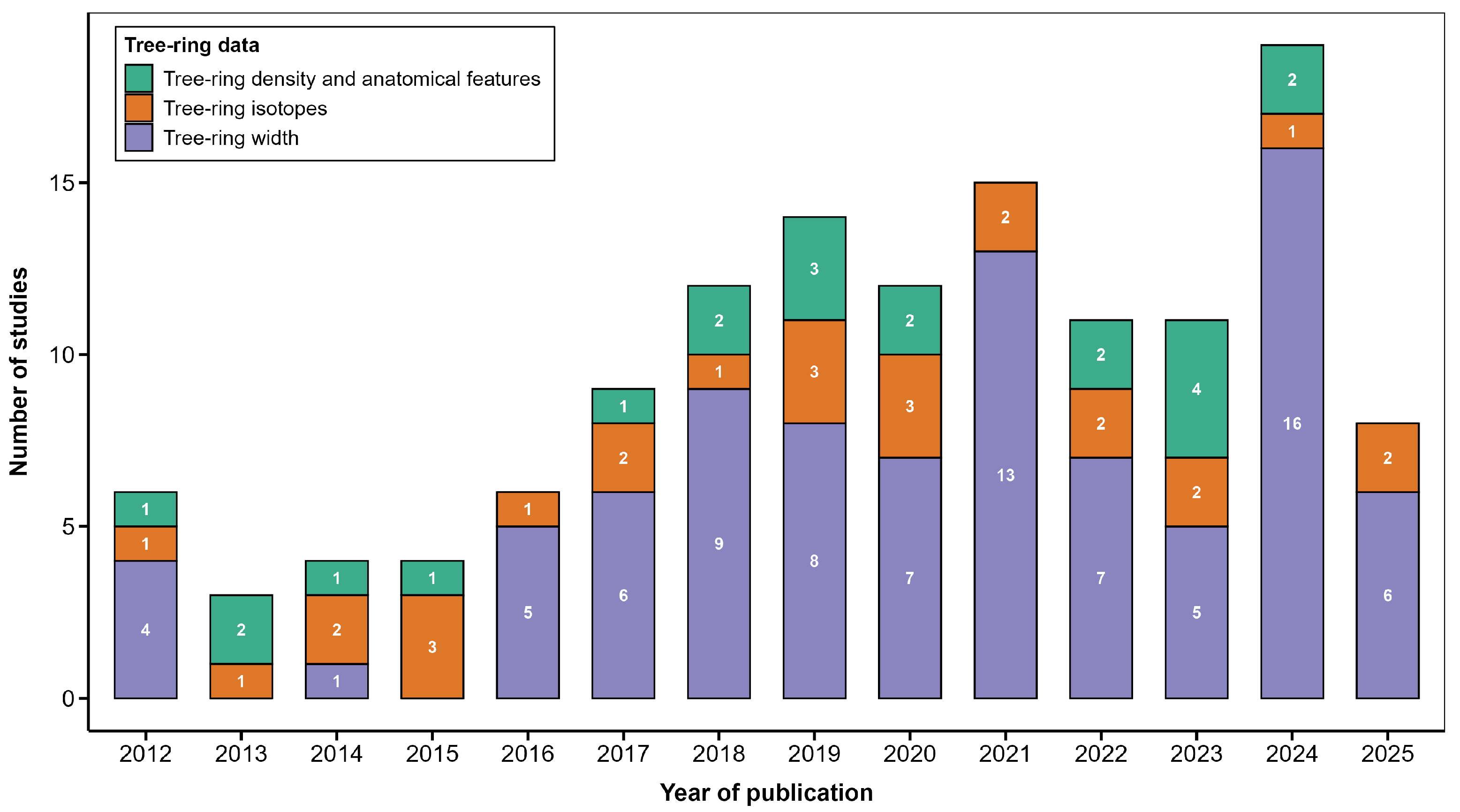Chicago/Turabian StyleYu, Ruifeng, and Mingqi Li. 2025. "Tree-Ring Proxies for Forest Productivity Reconstruction: Advances and Future Directions" Forests 16, no. 12: 1803. https://doi.org/10.3390/f16121803