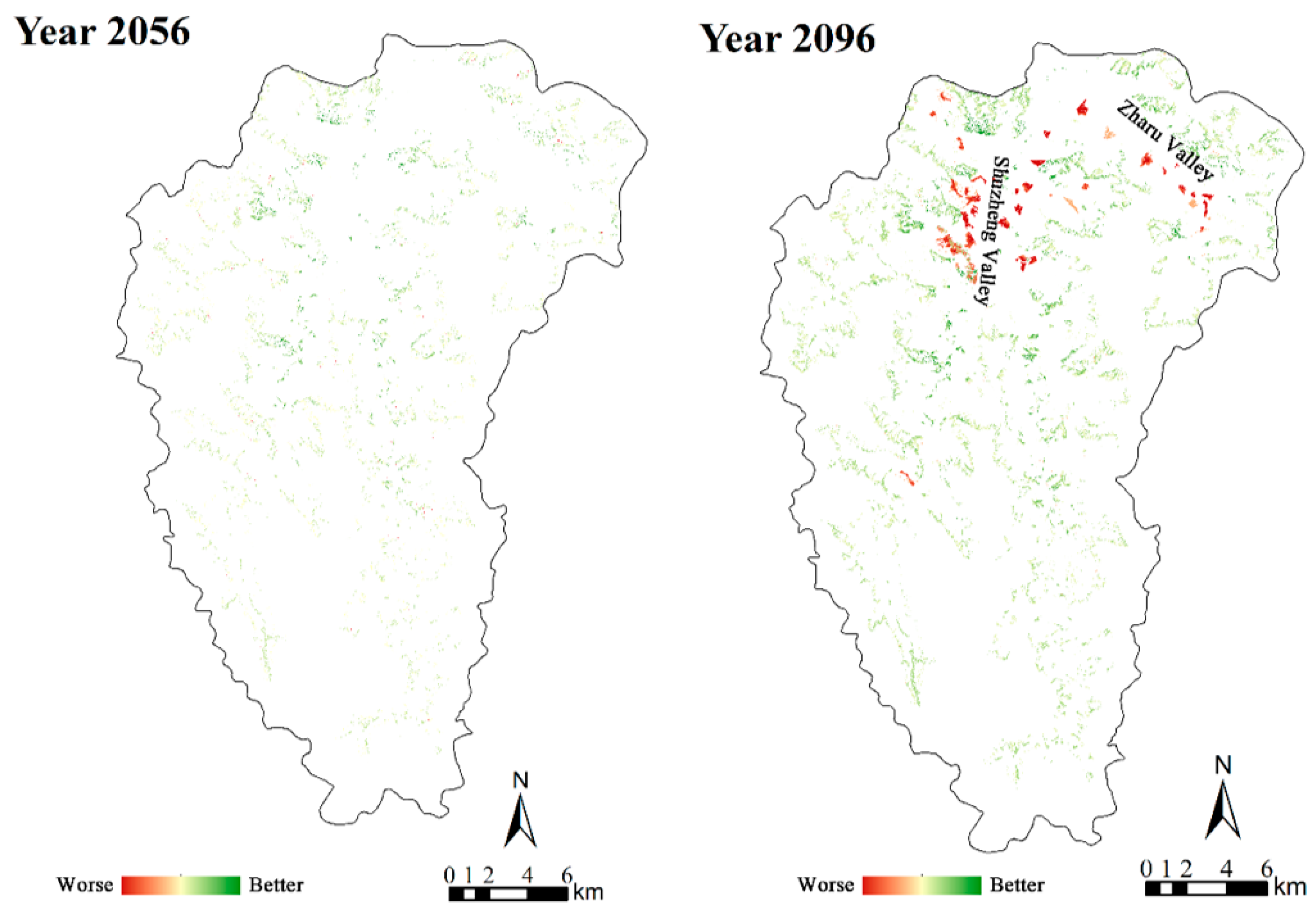 - Liu, J.; Zou, H.; Bachelot, B.; Dong, T.; Zhu, Z.; Liao, Y.; Plenković-Moraj, A.; Wu, Y. Predicting the responses of subalpine forest landscape dynamics to climate change on the eastern Tibetan Plateau. Glob. Change Biol. 2021, 27, 4352–4366. [Google Scholar] [CrossRef] [PubMed]