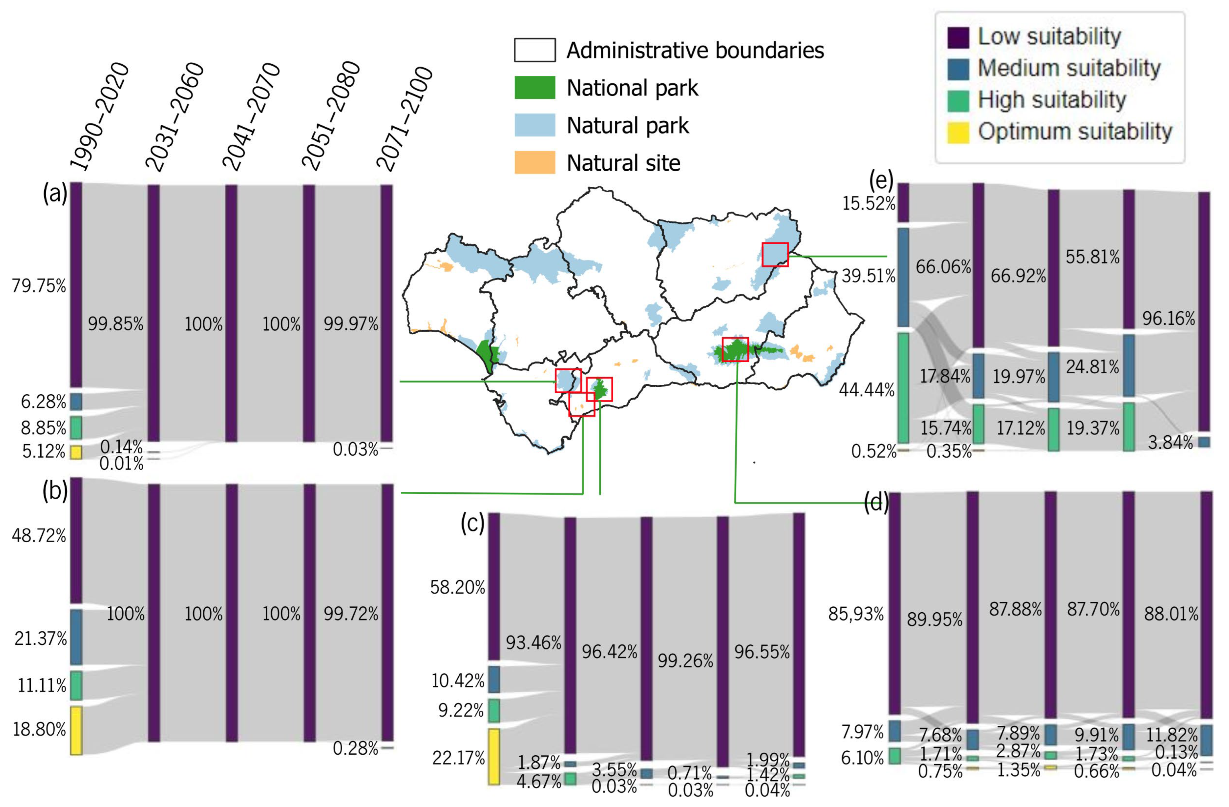 3.3. Changes in Habitat Suitability