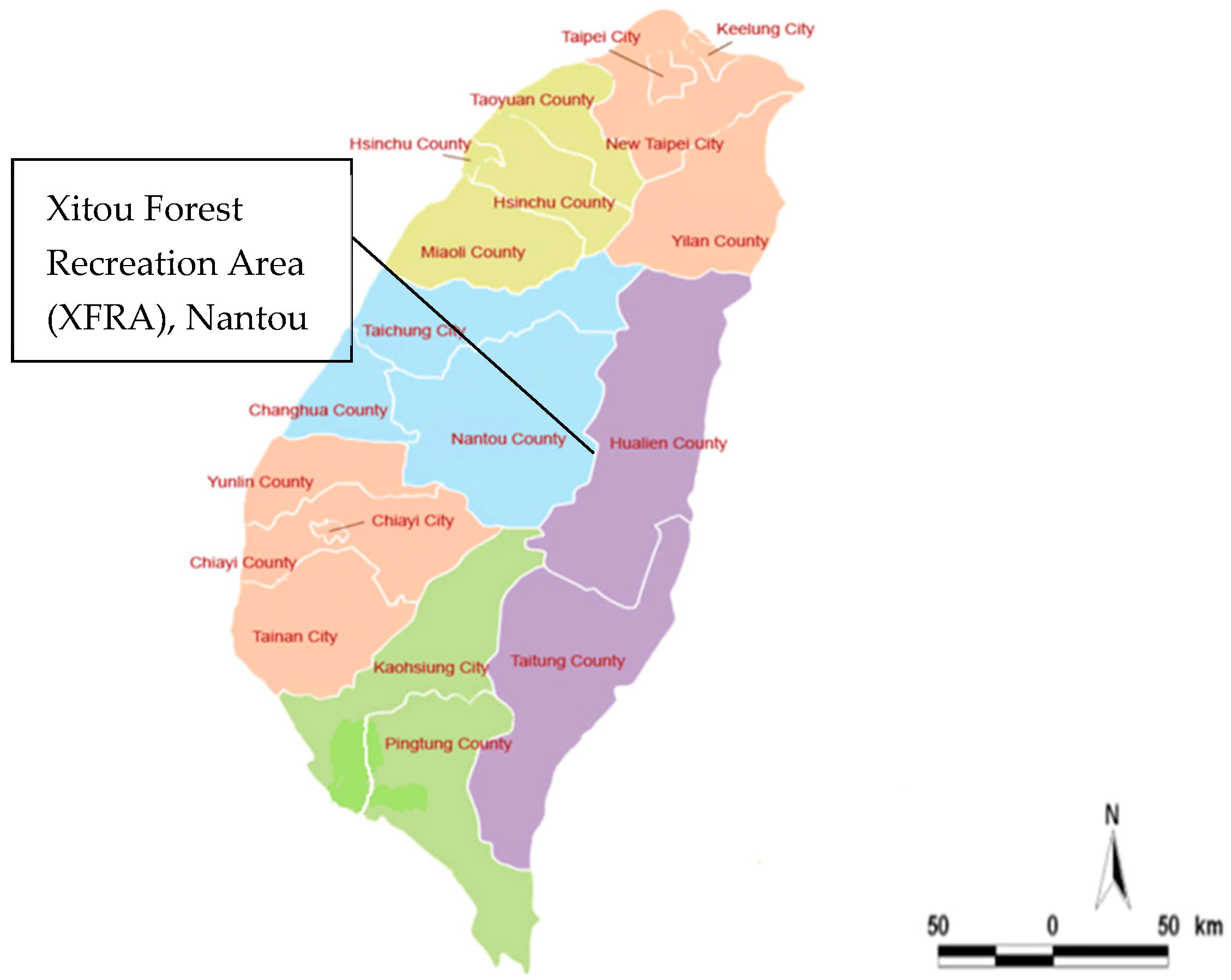 - Forestry and Nature Conservation Agency. Travel Information. 2023. Available online: https://www.forest.gov.tw/travel (accessed on 11 March 2025).