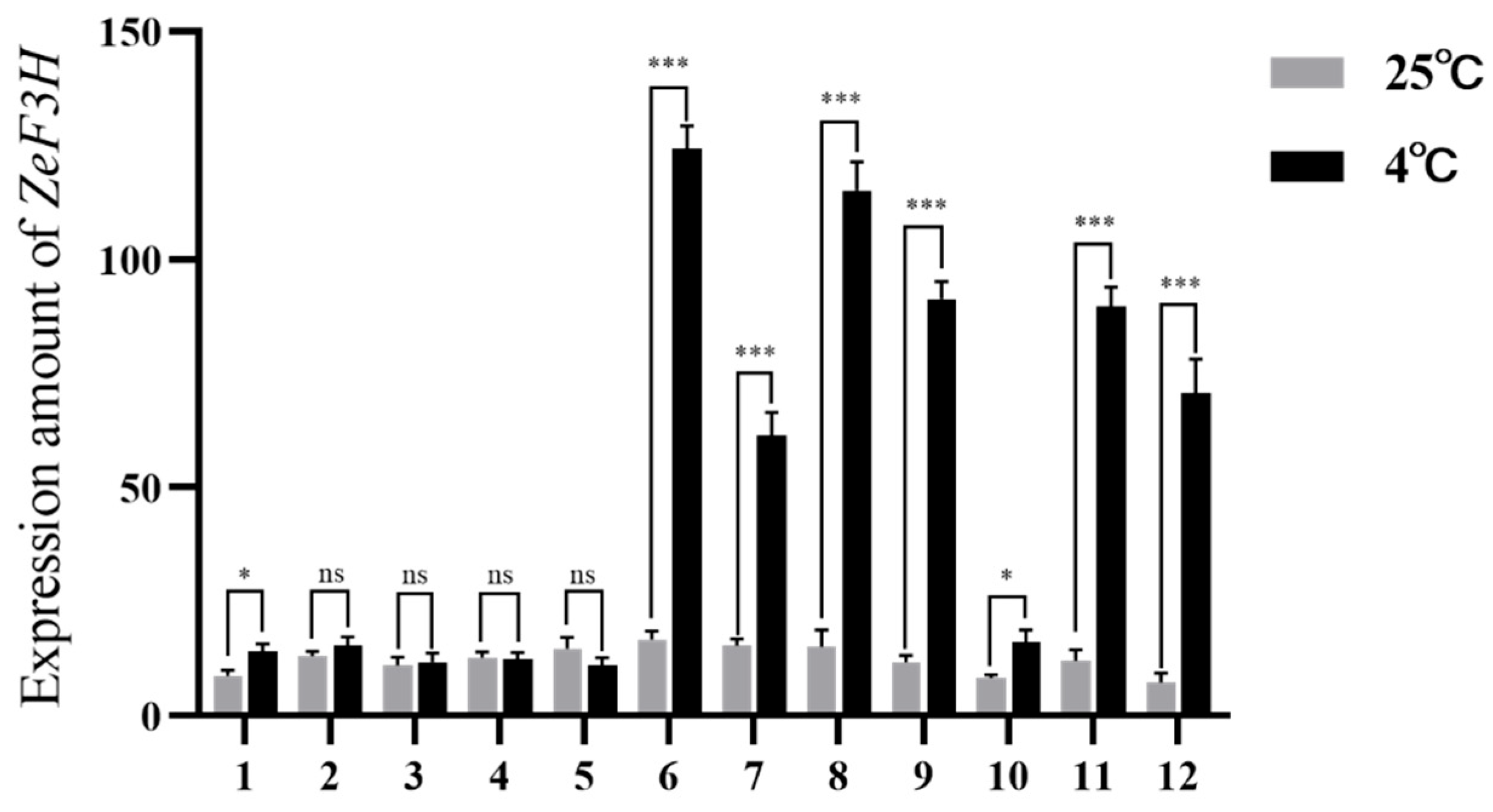 2.2. Gene Expression Parttern of ZeF3H in Zelkova schneideriana