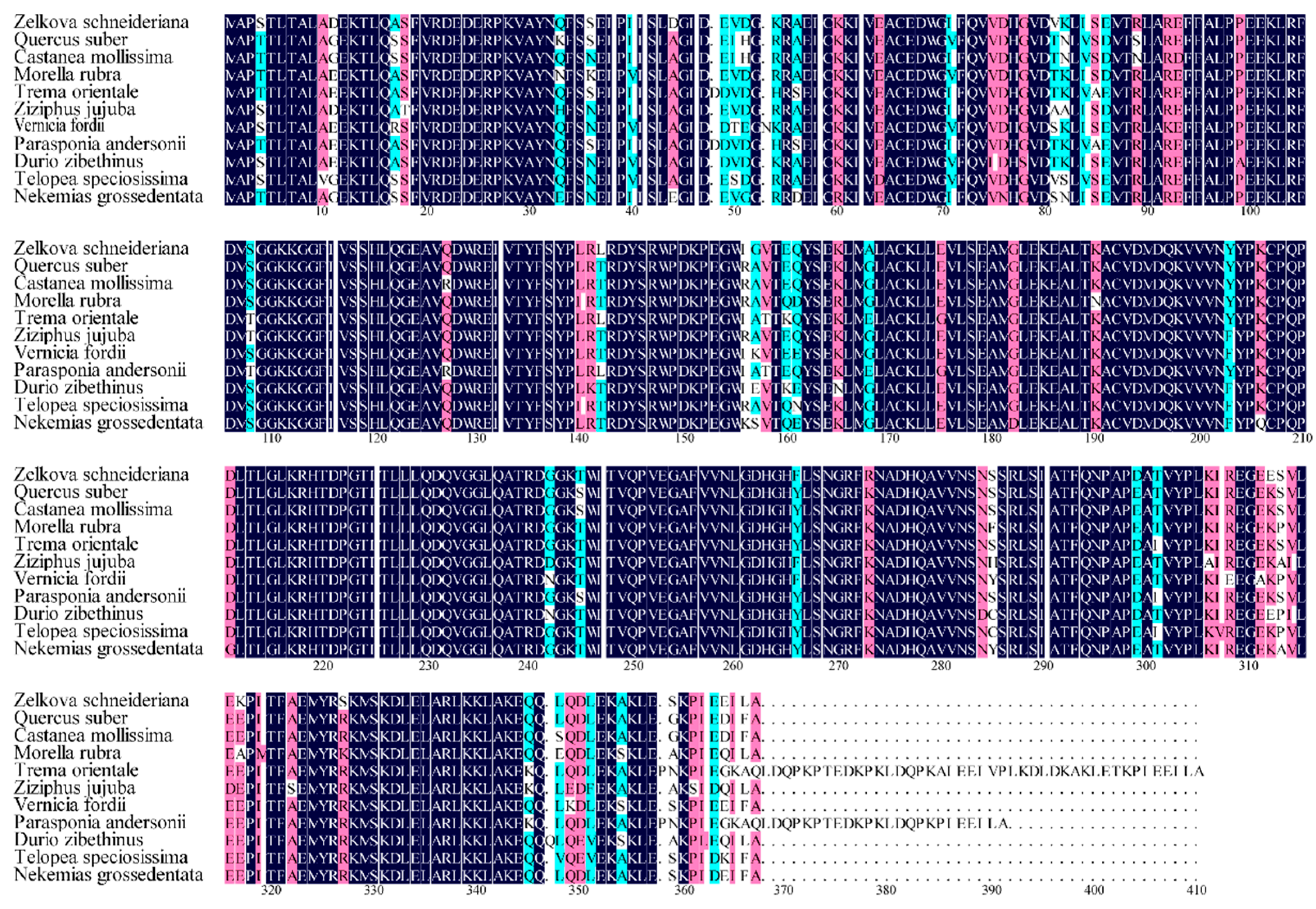 2.3. Gene Cloning and Sequence Analysis of ZeF3H Gene