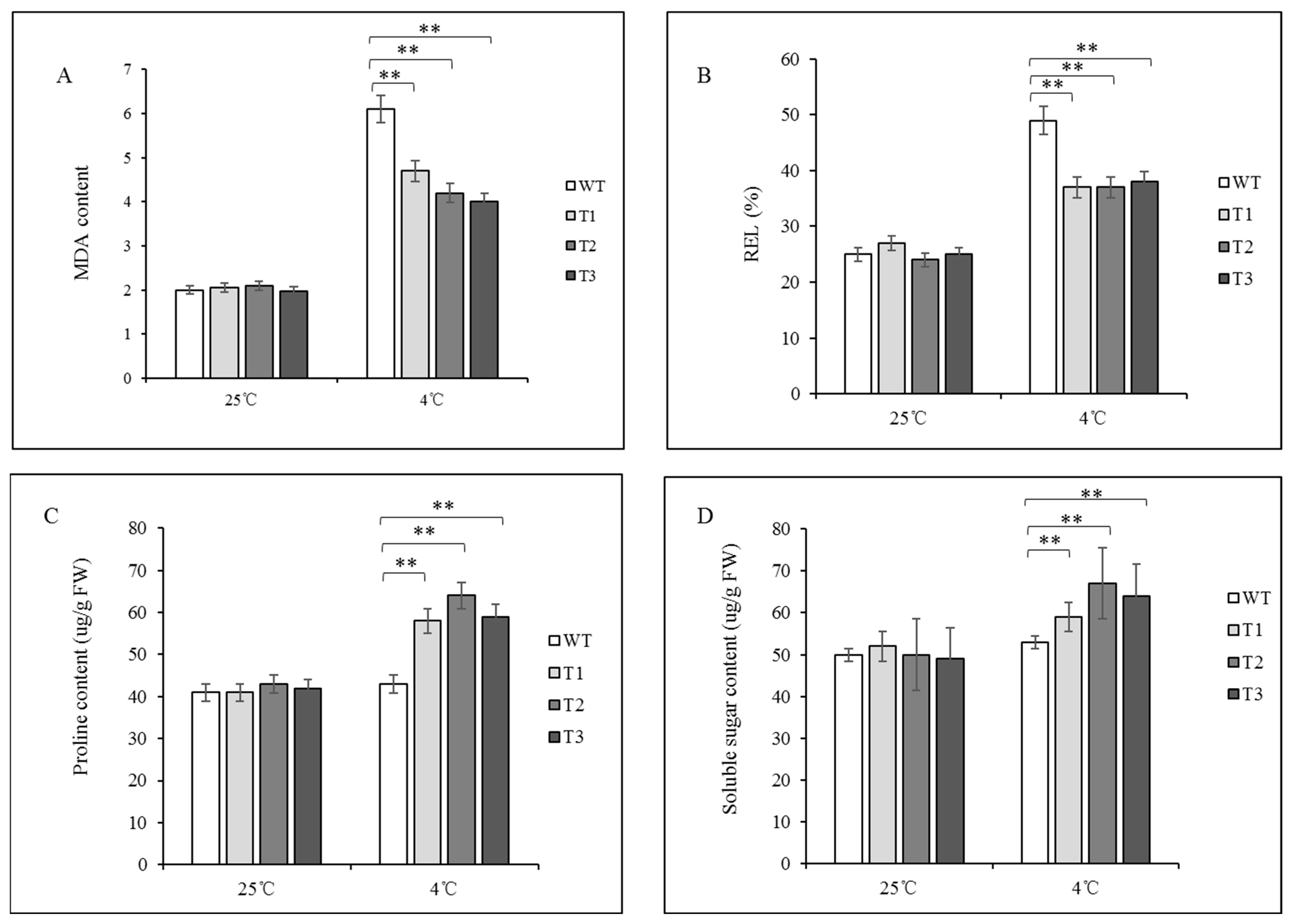 3.3. ZeF3H Enhanced Plant’s Tolerance to Chilling Stress