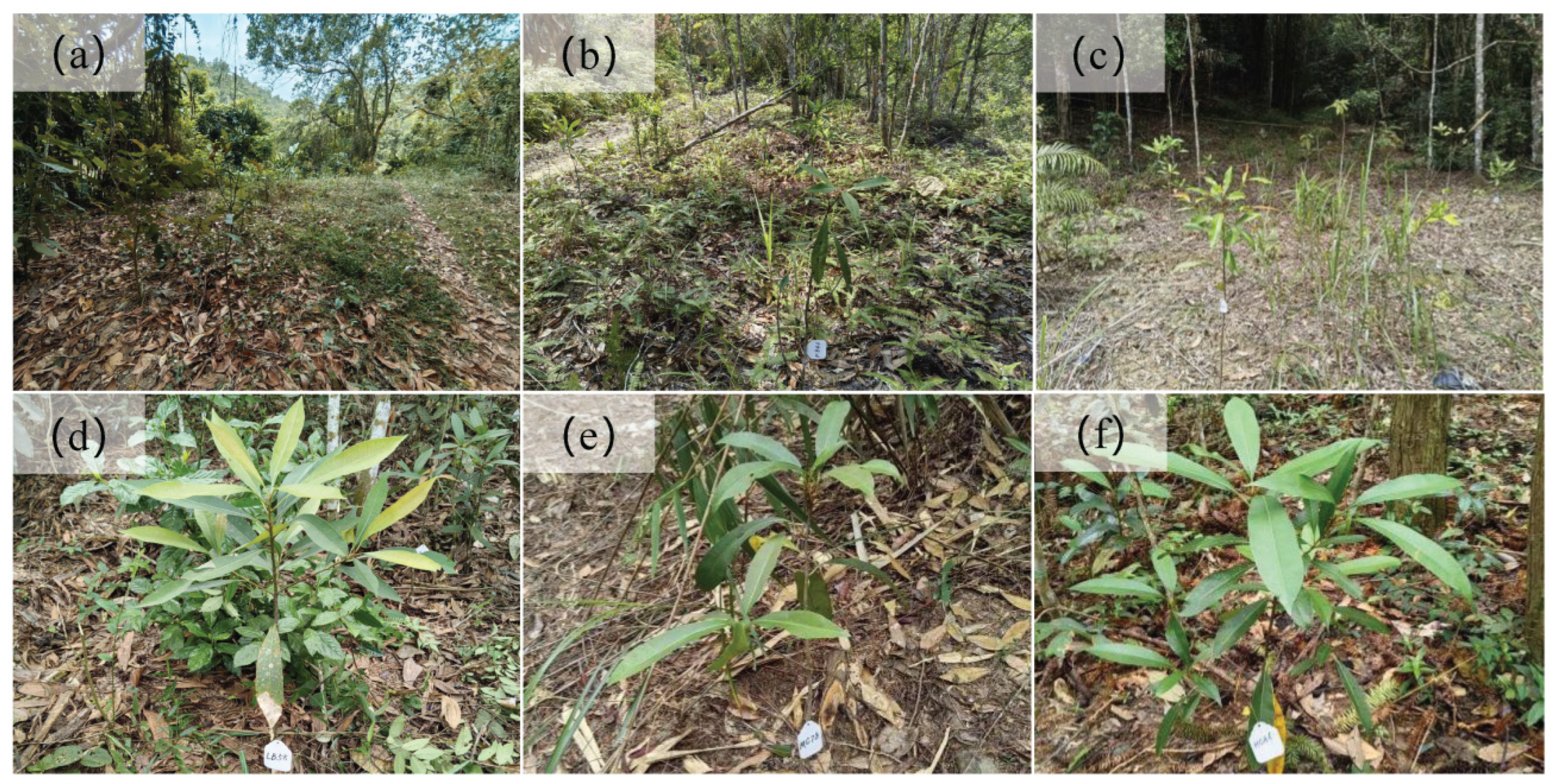 - The growth of M. hainanensis saplings was mainly driven by elevation, with lower-elevation saplings showing higher increments in height, diameter, and crown spread. While canopy closure was not statistically significant, moderate openness (30%–50%) at low elevations favored growth, whereas high-elevation, shaded conditions constrained development.