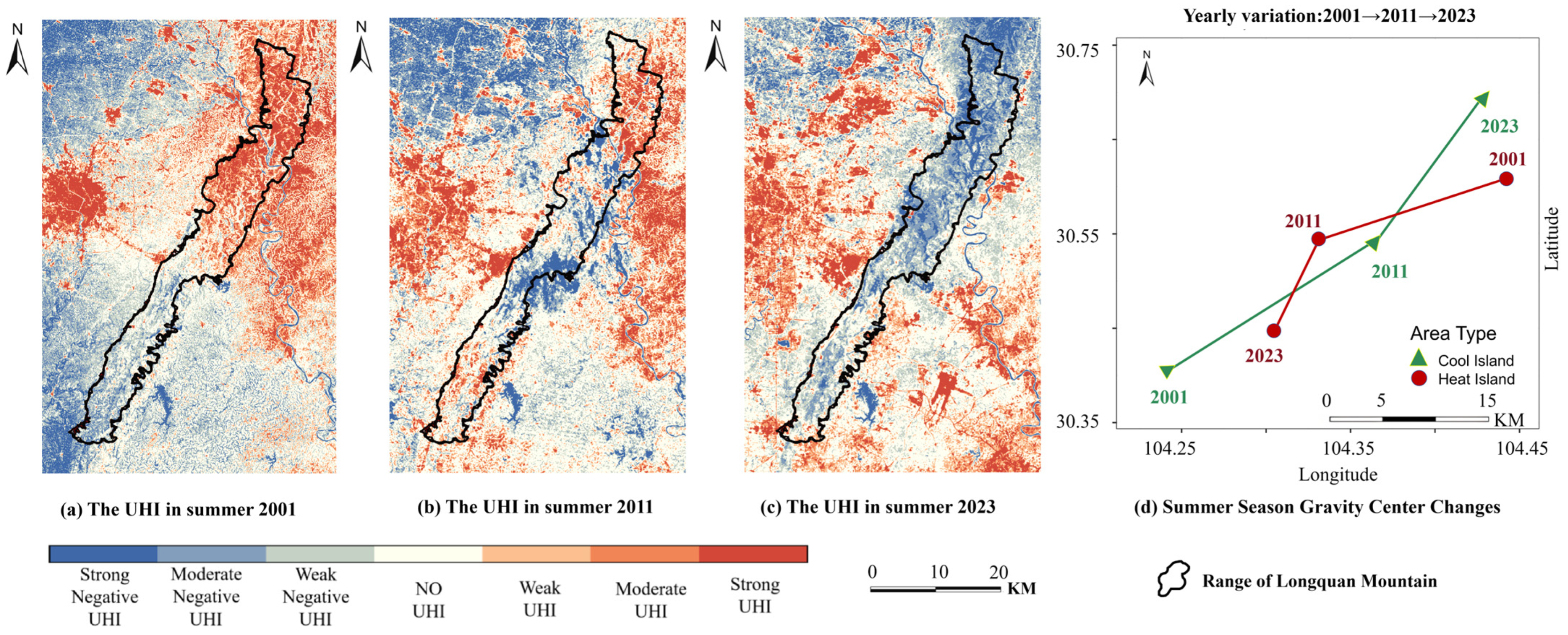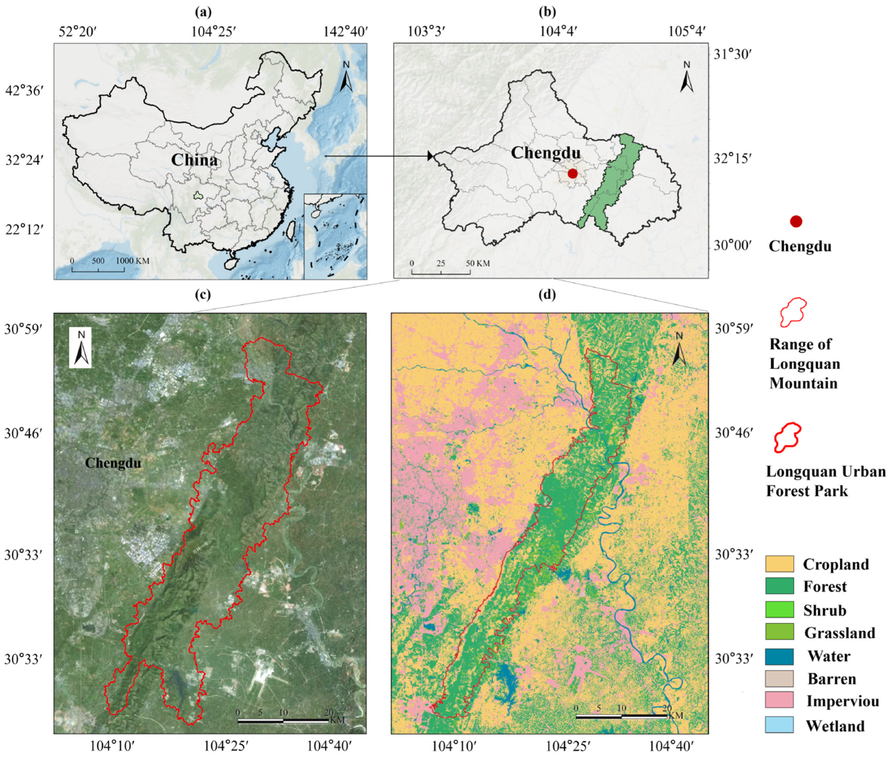 APA StyleRen, Y., Lin, L., Pan, J., Feng, Y., Yu, C., Li, T., Liu, J., Guo, Z., & Zhang, L. (2025). Cooling Effects in Large Urban Mountains: A Case Study of Chengdu Longquan Mountains Urban Forest Park. Forests, 16(12), 1850. https://doi.org/10.3390/f16121850