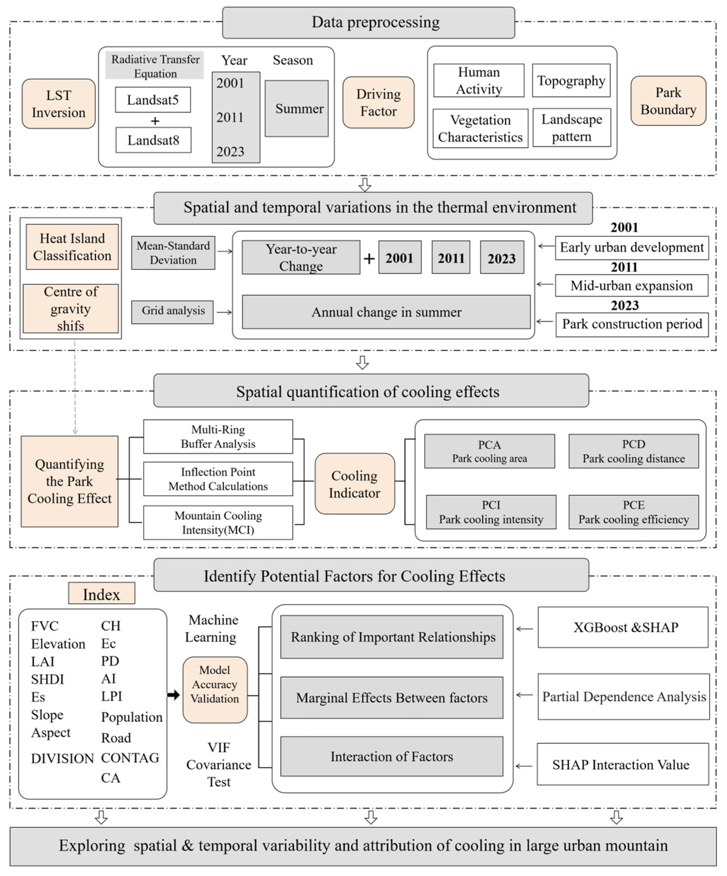 Ren Y, Lin L, Pan J, Feng Y, Yu C, Li T, Liu J, Guo Z, Zhang L. Cooling Effects in Large Urban Mountains: A Case Study of Chengdu Longquan Mountains Urban Forest Park. Forests. 2025; 16(12):1850. https://doi.org/10.3390/f16121850