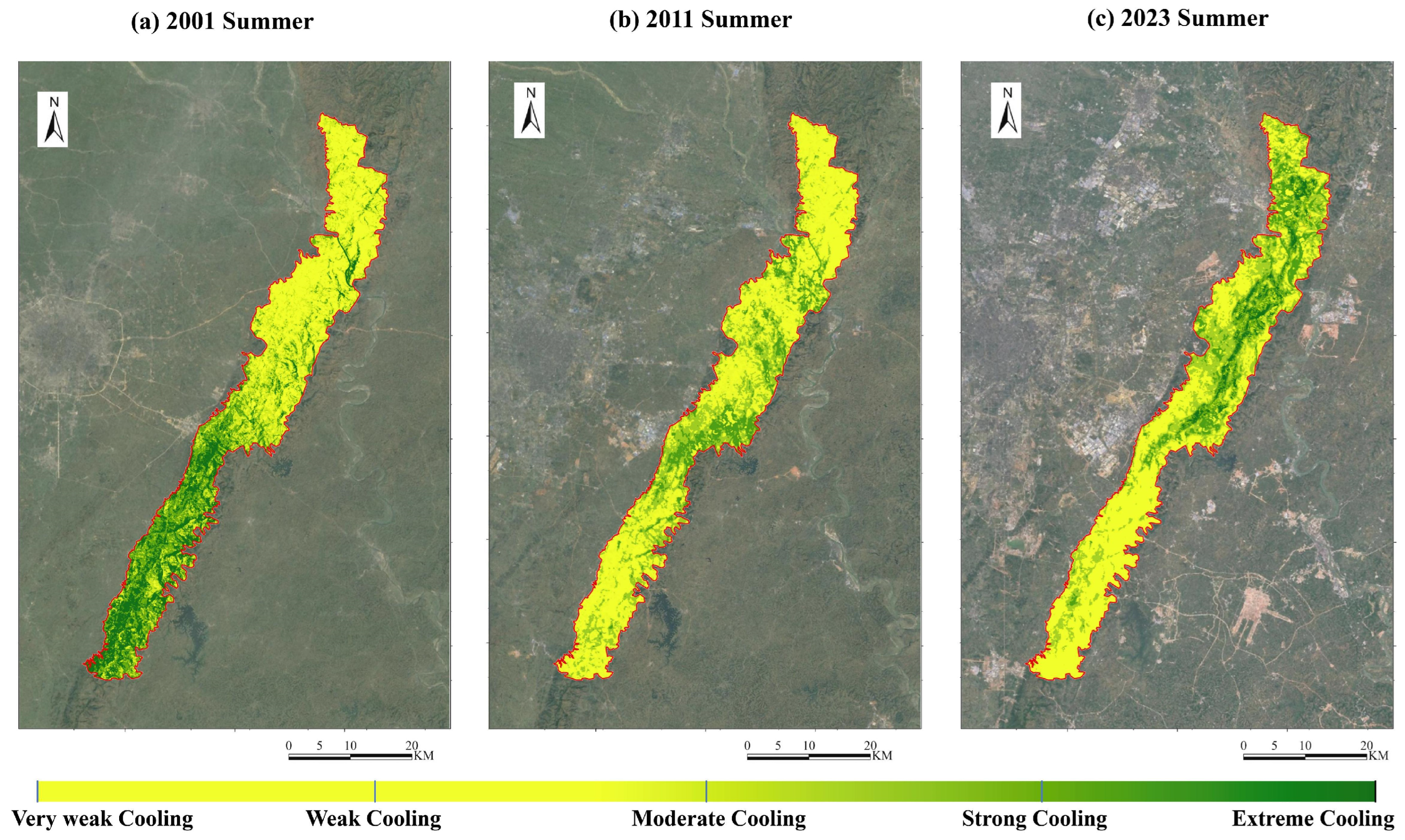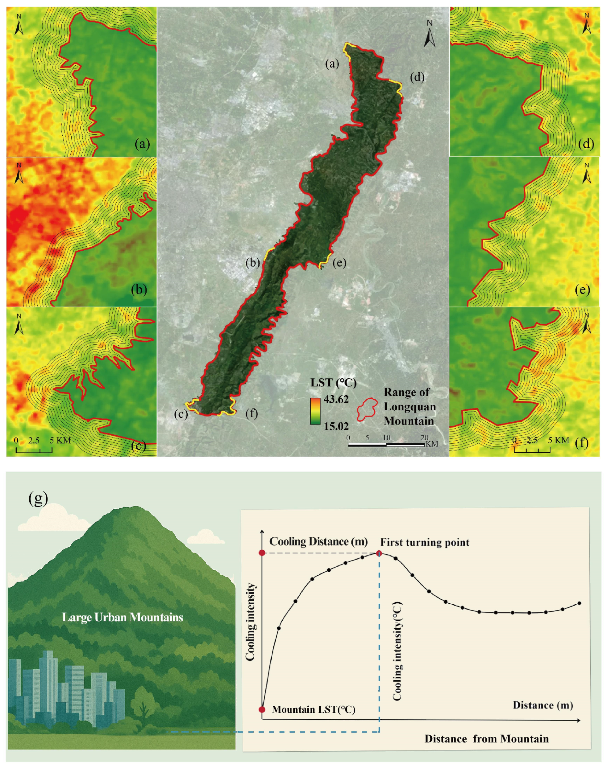 Ren, Y.; Lin, L.; Pan, J.; Feng, Y.; Yu, C.; Li, T.; Liu, J.; Guo, Z.; Zhang, L. Cooling Effects in Large Urban Mountains: A Case Study of Chengdu Longquan Mountains Urban Forest Park. Forests 2025, 16, 1850. https://doi.org/10.3390/f16121850