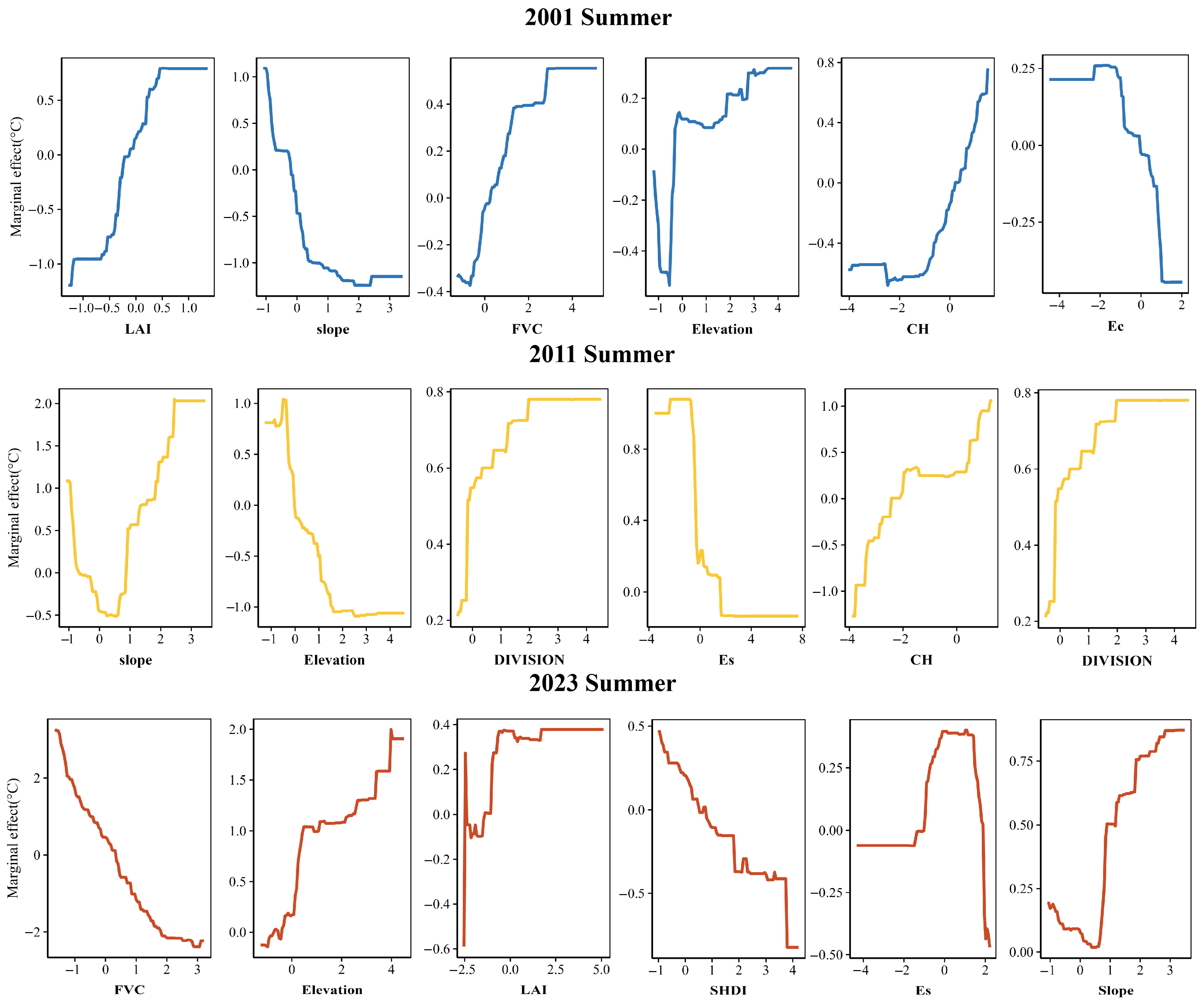 4.3. Key Driving Factors and Their Interactions in the Cooling Effects of LMFP over Time