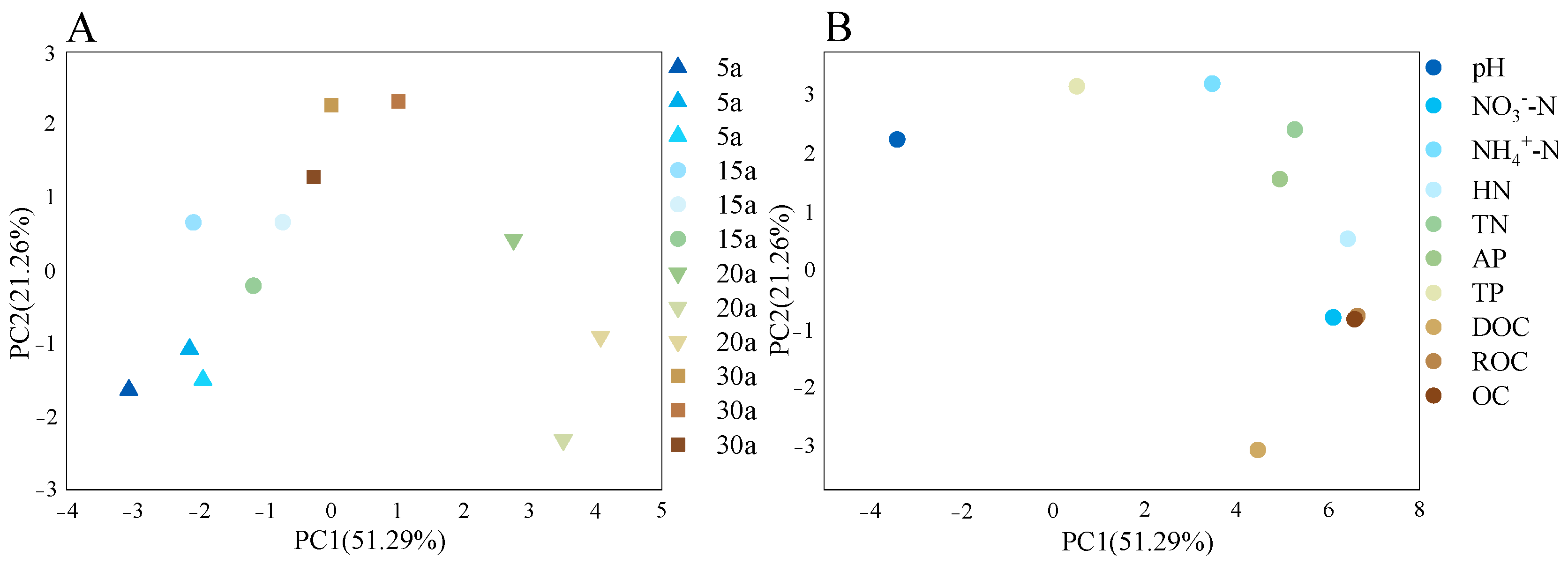 | Stand Age | pH | OC | DOC | ROC | TN | NO3−-N | NH4+-N | HN | TP | AP |