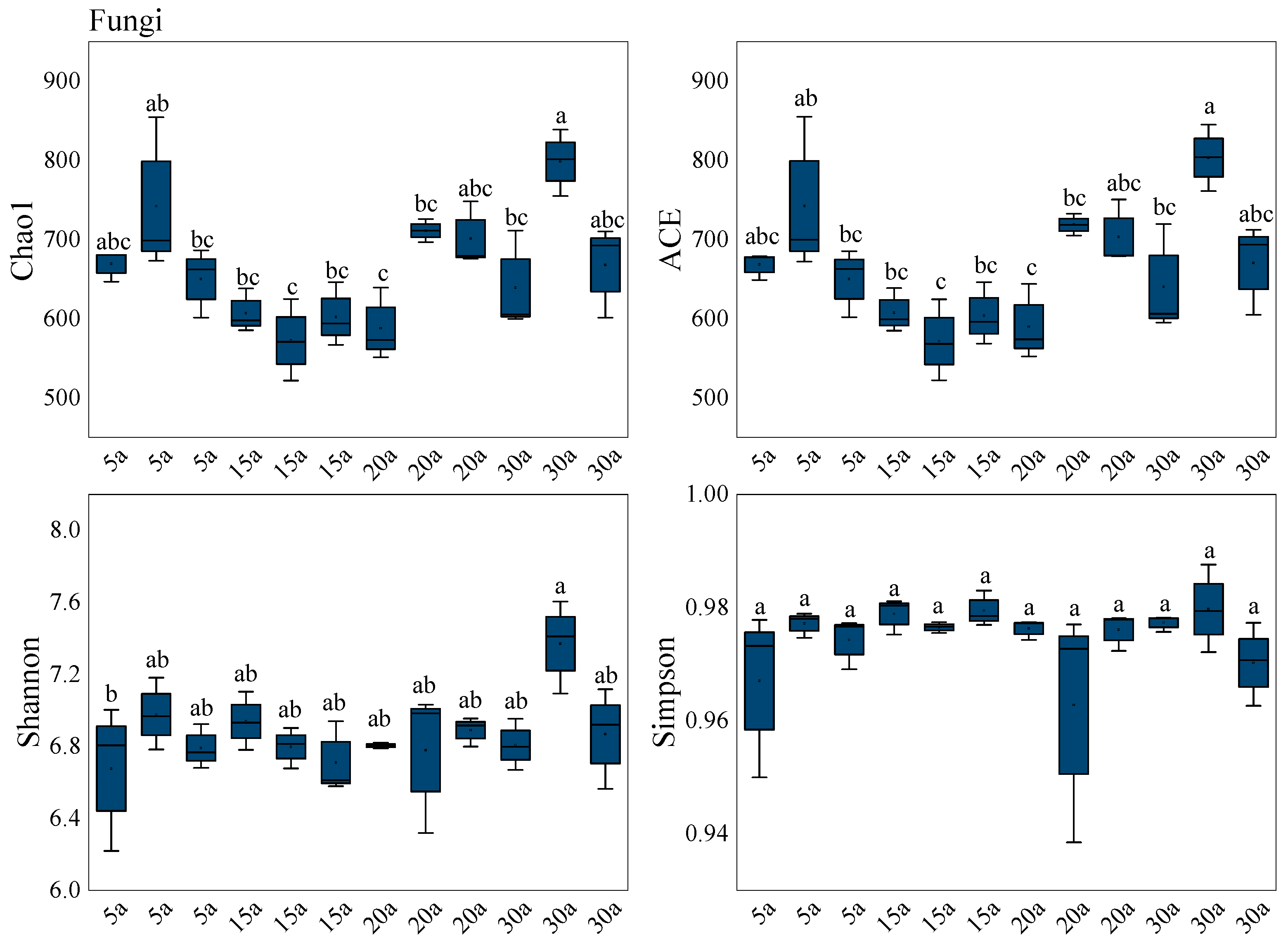 3.3.2. Variation in Soil Microbial Diversity with Different Stand Ages
