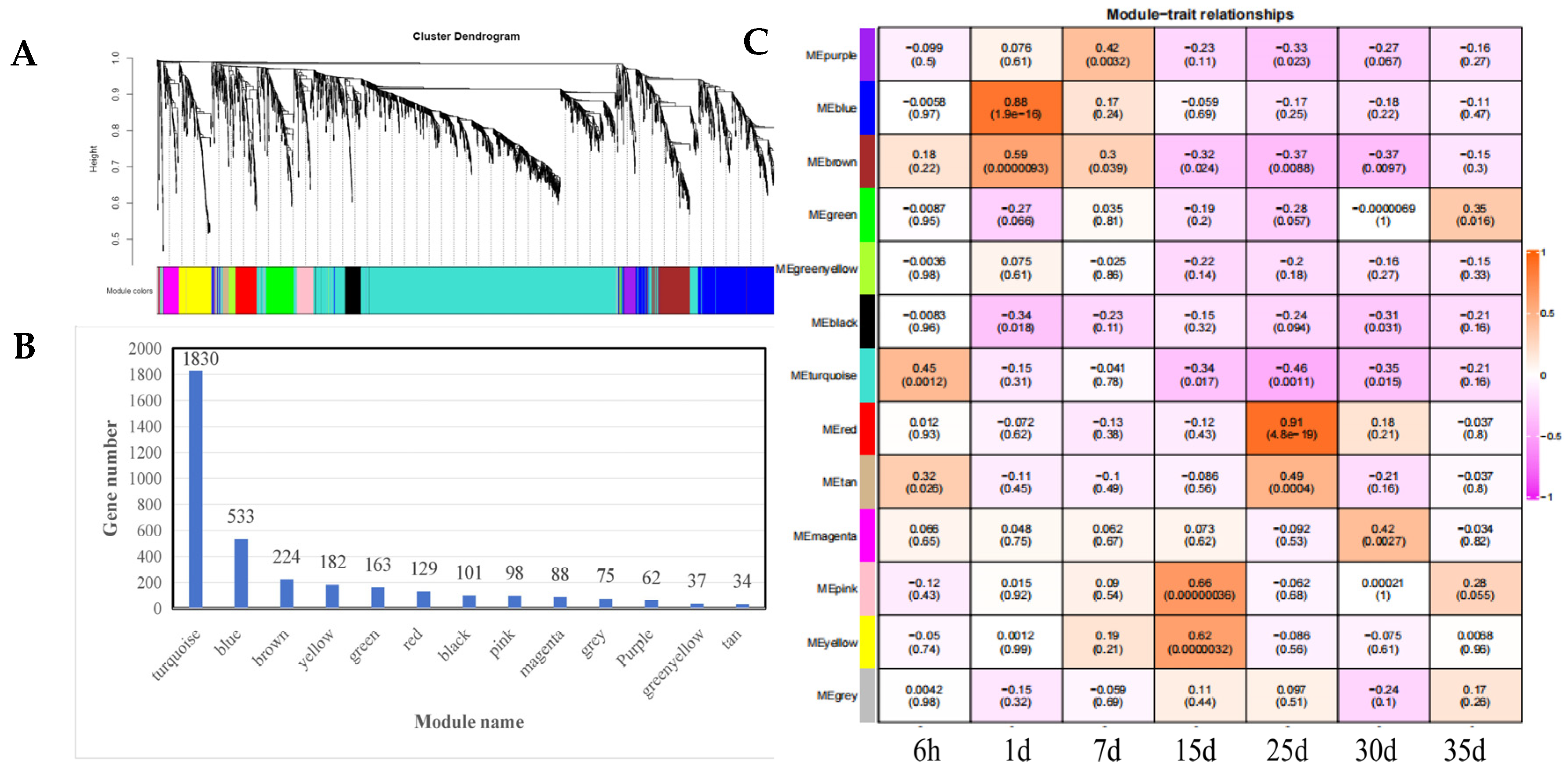2.6. Gene Co-Expression Network Analysis