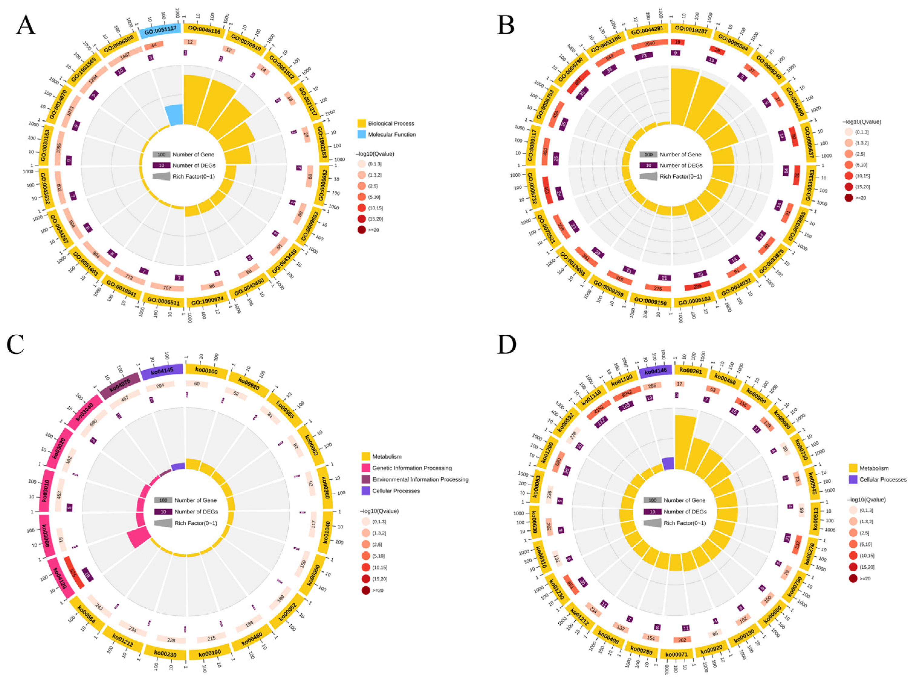 - Cantalapiedra, C.P.; Hernández-Plaza, A.; Letunic, I.; Bork, P.; Huerta-Cepas, J. eggNOG-mapper v2: Functional Annotation, Orthology Assignments, and Domain Prediction at the Metagenomic Scale. Mol. Biol. Evol. 2021, 38, 5825–5829. [Google Scholar] [CrossRef] [PubMed]