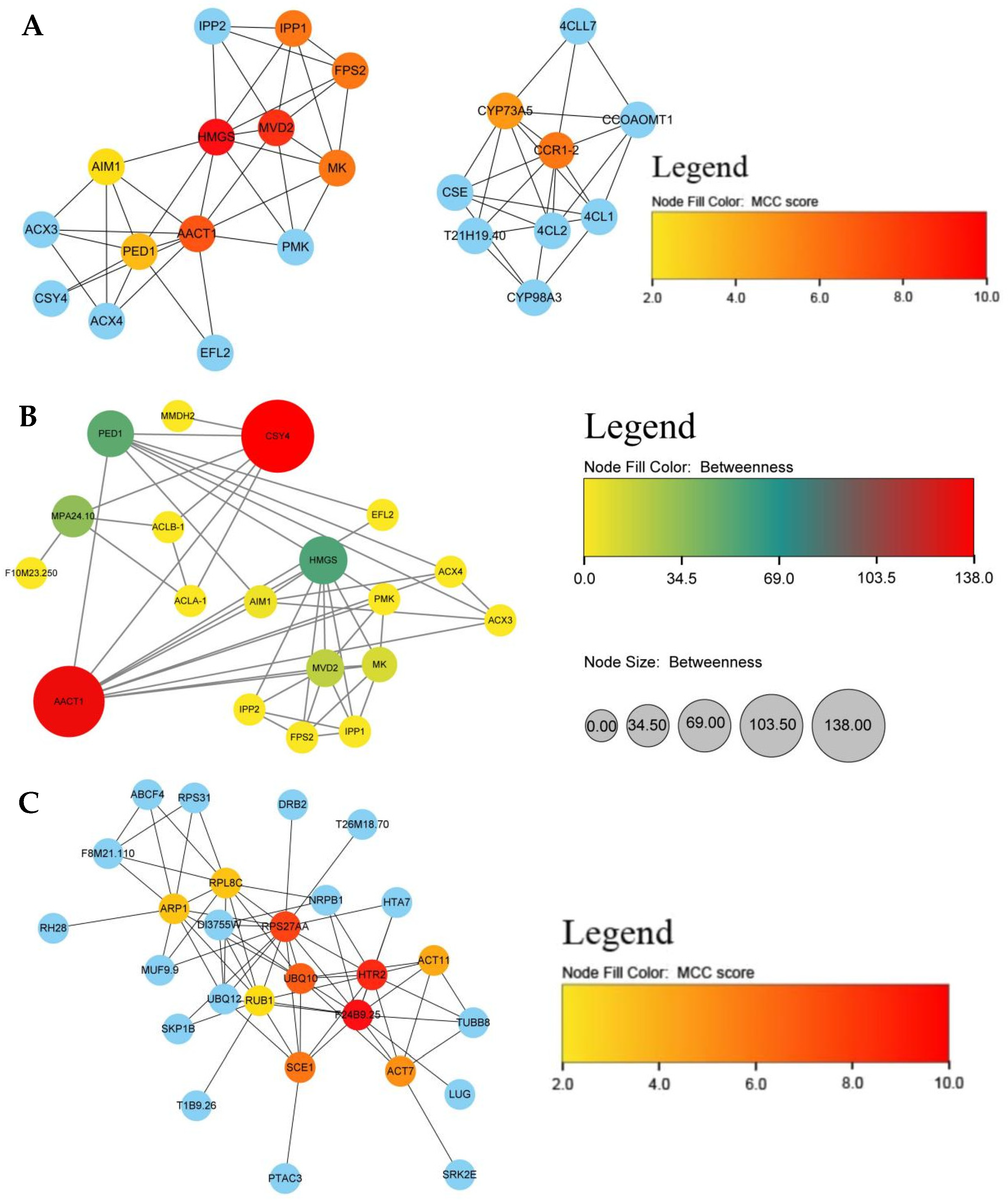 3.6. Identification of Hub Genes by Integrating Protein–Protein Interaction Network