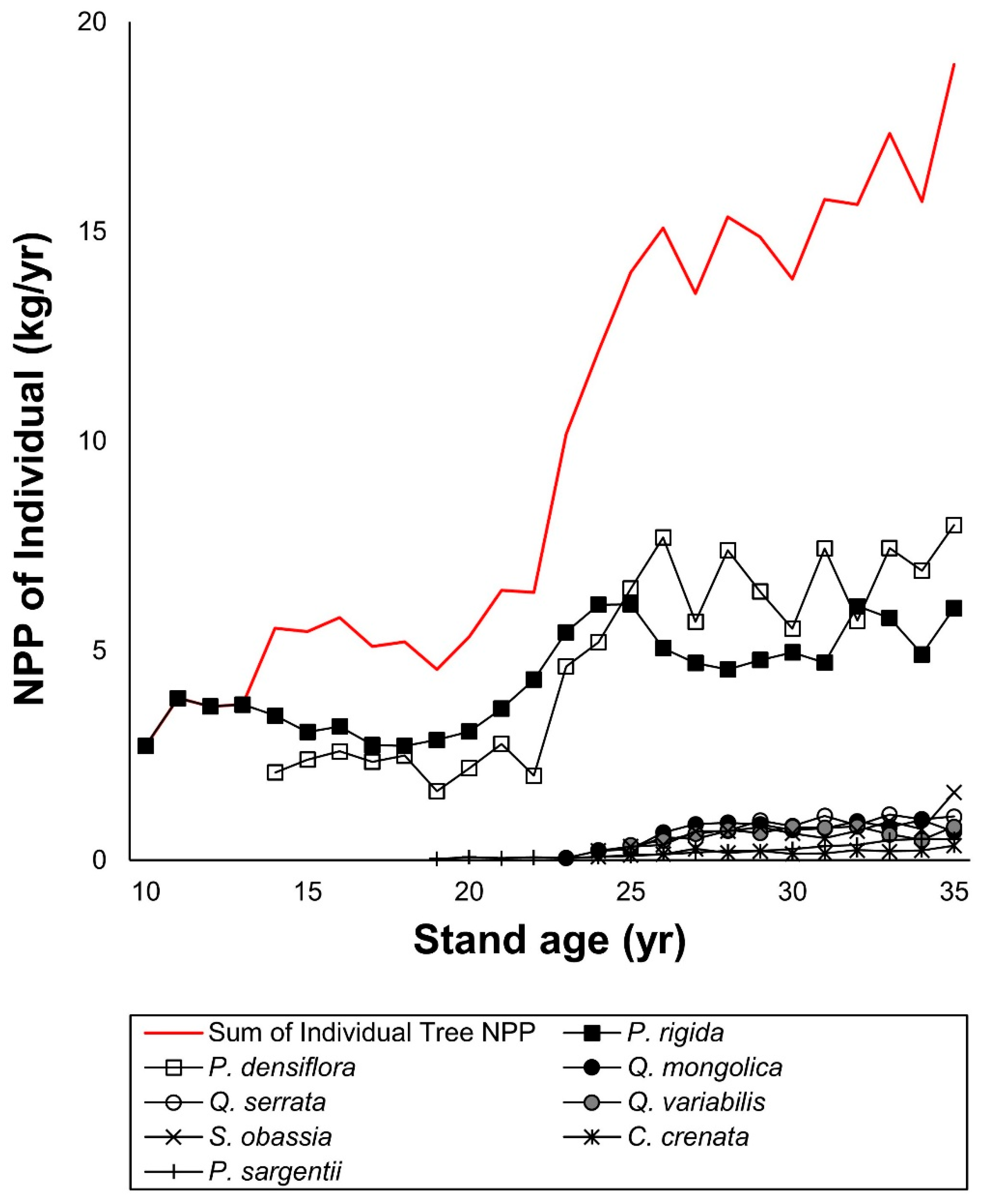 3.3. NPP of Individual Trees