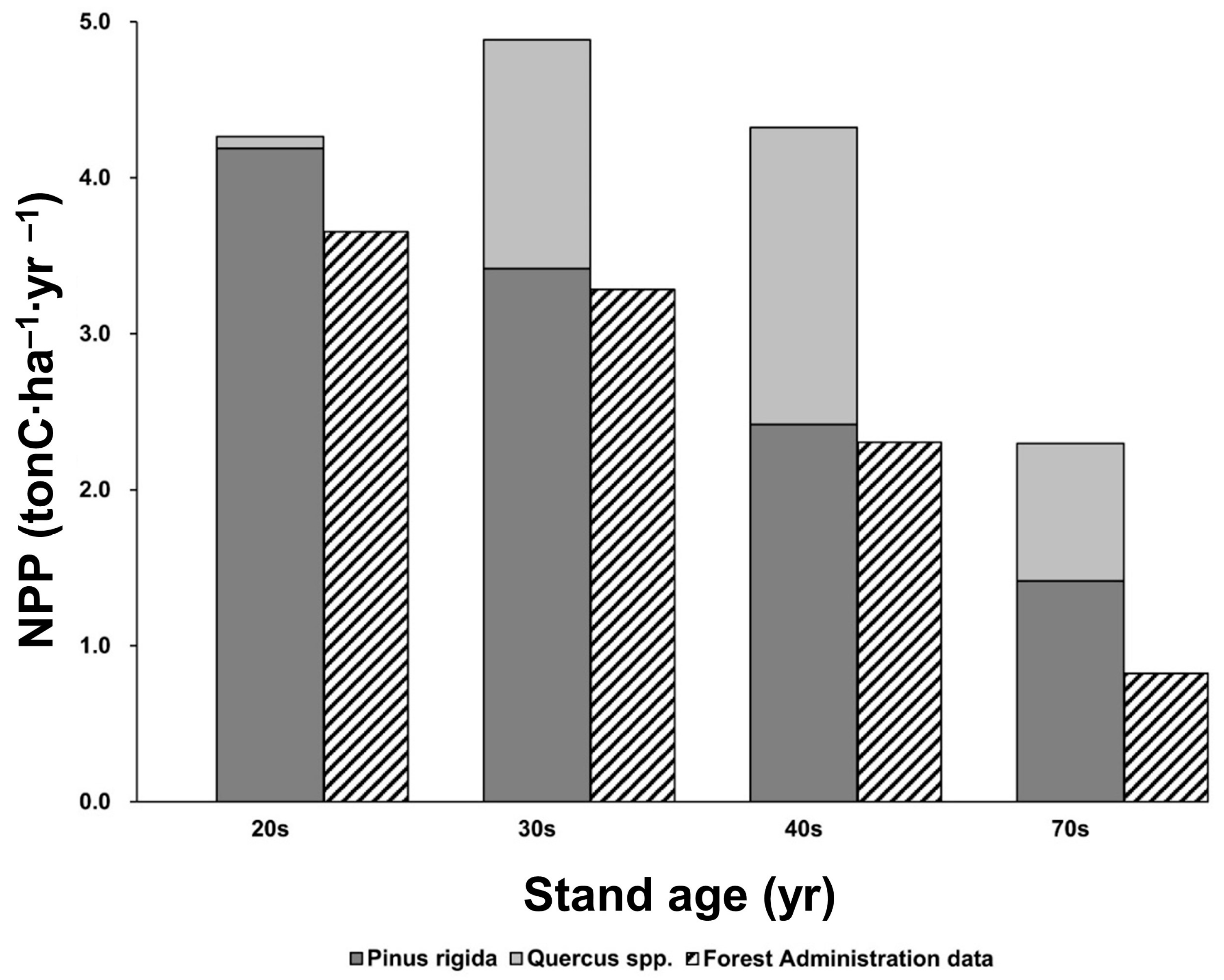 4.2. Changes in NPP with the Stand Age