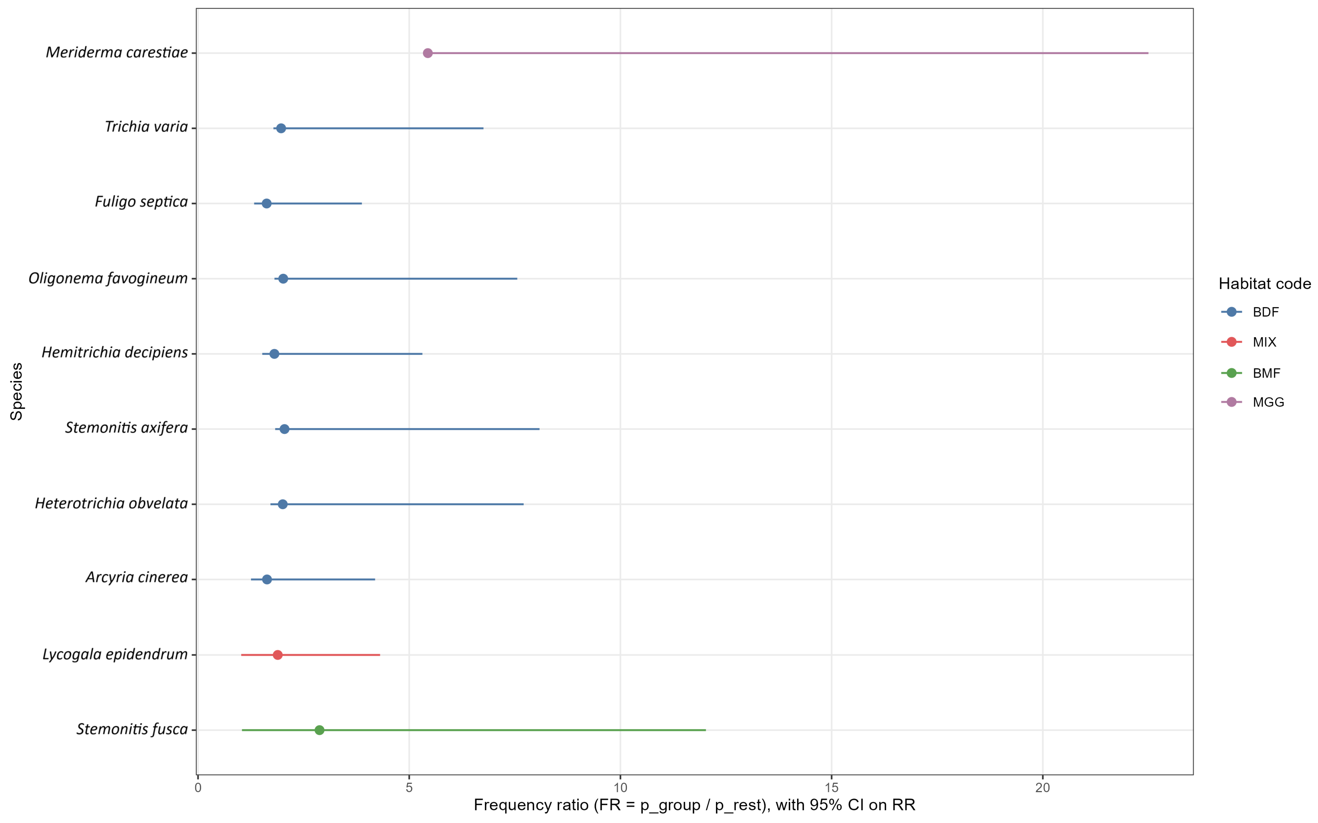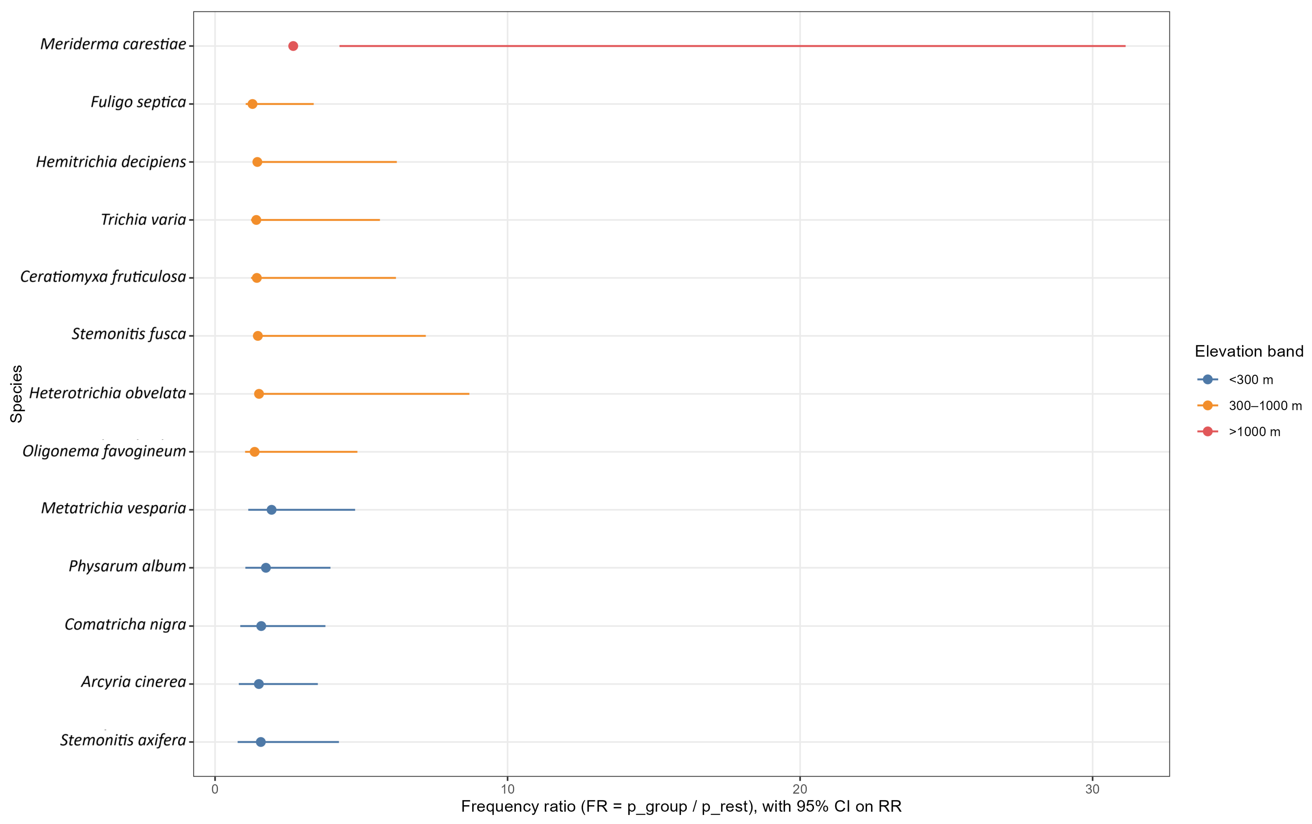 More broadly, a harmonised, georeferenced corpus can advance the ecological interpretation of slime moulds in forests without over-engineering models or fragmenting categories. By concentrating on forest habitat, management intensity, and elevation, which jointly modulate moisture regimes, substrate supply and microclimatic buffering, the analysis linked substrate affinities to operational indicators. The indicator sets and elevation curves can be read directly onto routine field contexts (for example, dead wood retention, canopy openness, and montane versus lowland settings) and provide a reproducible baseline against which future changes in forest structure and climate can be tracked. As additional data become available, the same framework can absorb more detailed substrate descriptors and microhabitat information while retaining comparability with the present results, thereby supporting an iterative programme of bioindication using slime moulds across European forests. Taken together, these properties provide a robust continental-scale foundation for developing Europe-wide bioindication schemes based on slime mould assemblages, rather than a fully standardised system at this stage, and underline the importance of making the habitat and elevation structure explicit in any application.