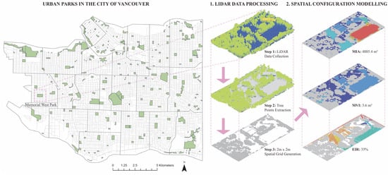 The City of Vancouver, situated on Canada’s West Coast (49°13′ N to 49°32′ N latitude, and 122°57′ W to 123°31′ W longitude), spans about 115 km2 and had a population of 662,248 as of the 2021 Census [29]. It is known for its dedication to green infrastructure, resulting in a network of 251 urban parks managed by the City of Vancouver.