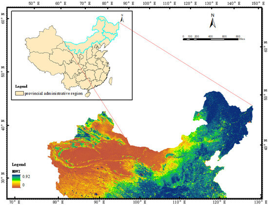 (3) The digital elevation model data (DEM) are derived from the National Aeronautics and Space Administration (NASA) GTOPO30 production. Using ArcGIS 10.7, all spatial geographic data are transformed into the uniform projection coordinate system of Krasovsky_1940_Albers and resampled at a spatial resolution of 1000 m.