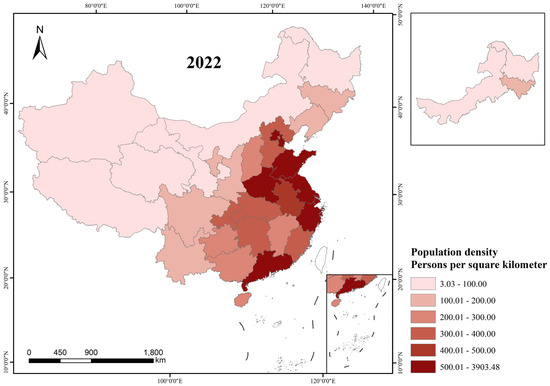 Figure 2 shows the distribution of the population density in China in 2022, with Heilongjiang Province having a population density of 66 people per km