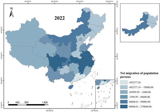 55]. In other words, it is constantly shifting between positive and negative as time progresses. Population outflows often cause labor shortages and insufficient incentives for economic development due to population loss, while inflows may cause social problems and resource constraints due to the over-concentration of the population [