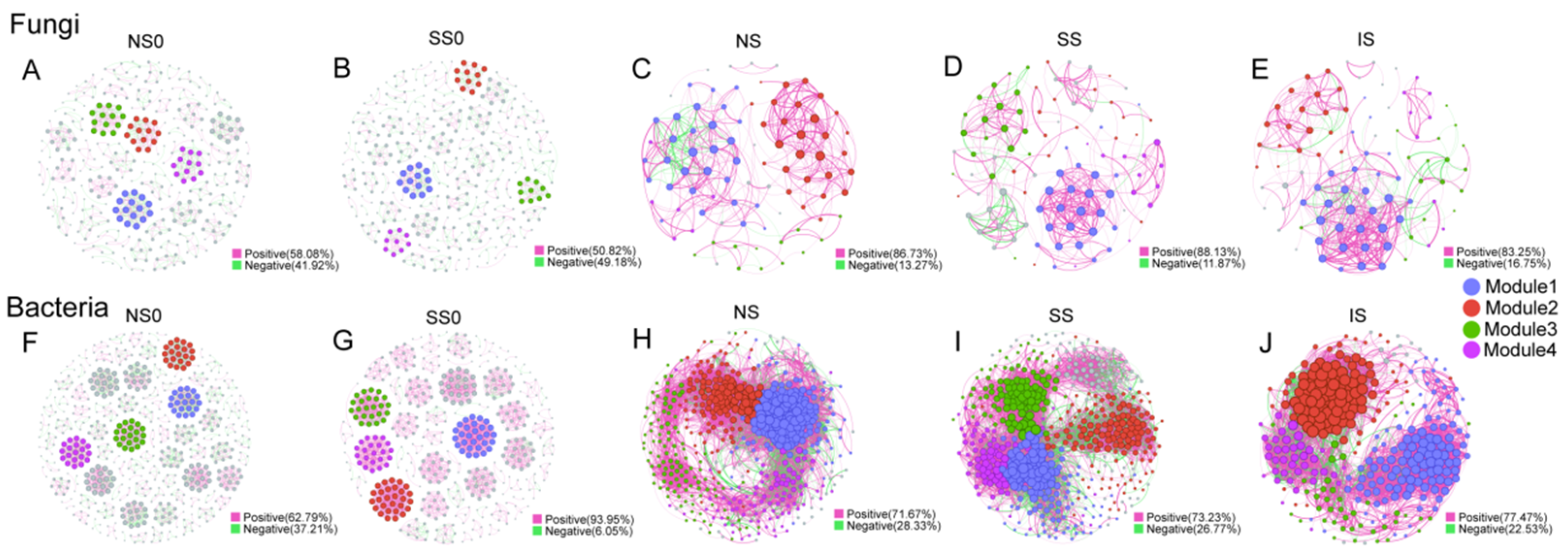 4.3. Microbial Co-Occurrence Network and Community Assembly