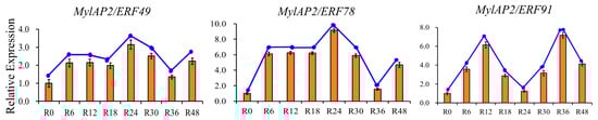 Expression patterns of MylAP2/ERF49, MylAP2/ERF78, and MylAP2/ERF91 under flooding stress determined using qRT–PCR.