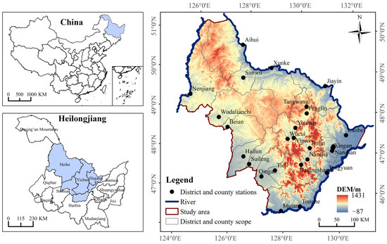 | Elevation data (DEM) | Geospatial Data Cloud (https://www.gscloud.cn/, accessed on 15 June 2024) | 30 m |