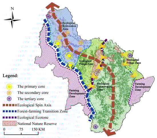 - An “Axis, Two Belts, Four Zones, and Multiple Cores” ecological security planning framework is proposed. Based on the differences in the main components of the ESP in each zone, the southeastern and northwestern parts of the Xiaoxing’an Mountains, as well as the marginal areas, should prioritize protection, restoration, and construction, respectively. Corresponding protection and restoration strategies are proposed to address various ecological needs.