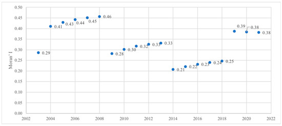Moran’s index values. Note: All the values in the table are significant at the 1% level.
