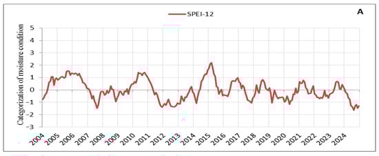 Moisture conditions in the observation area: (A) SPEI-12, (B) SPEI-6.