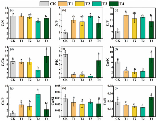 | TCa/(g·kg−1) | 4.90 ± 0.21 a | 4.05 ± 0.80 ab | 3.91 ± 0.95 ab | 4.83 ± 0.53 a | 2.92 ± 0.96 b |