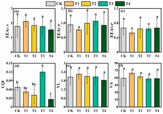 | TN/(g·kg−1) | 4.08 ± 0.47 a | 3.17 ± 0.32 b | 3.28 ± 0.39 b | 2.43 ± 0.17 c | 3.35 ± 0.16 b |