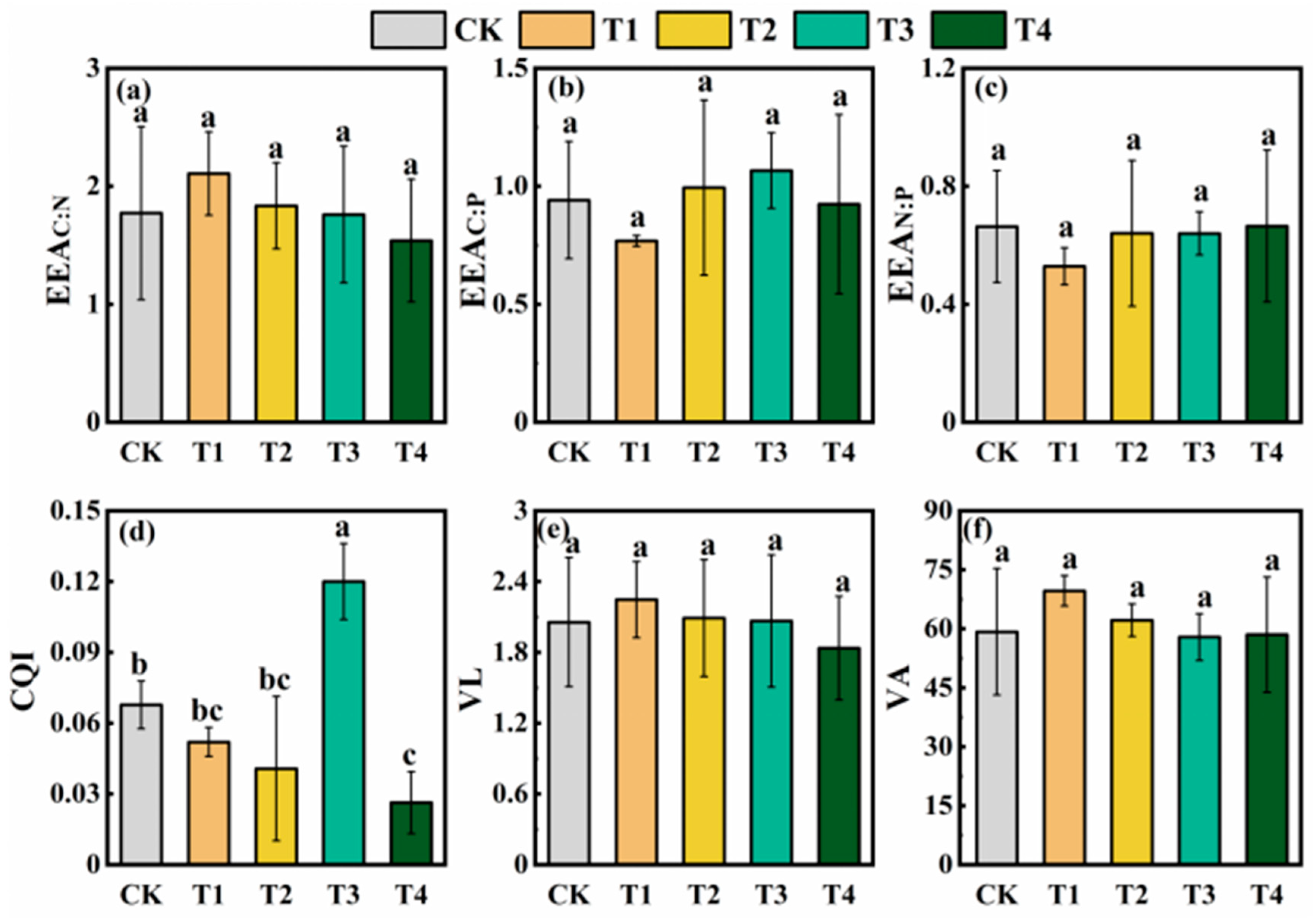 3.4. Effect of Fertilization on Soil Enzyme Stoichiometry