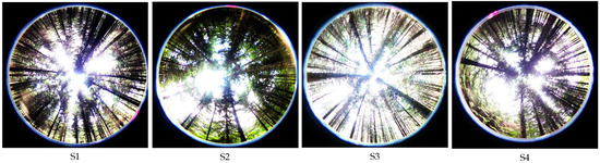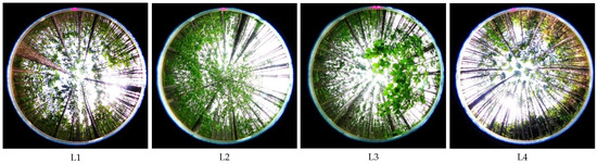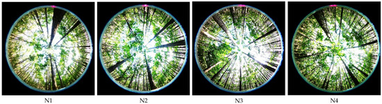 The canopy images used in the experiment were obtained from the Liangshui Experimental Forestry Farm of Northeast Forestry University. They were acquired randomly by a Panasonic DMC-LX5 camera (Panasonic Company, Kadoma City, Osaka, Japan) fisheye lens Samyang AE 8/3.5 Aspherical IF MC Fisheye (Samyang Optics, Changwon, Gyeongsangnam-do, Republic of Korea). The Liangshui Experimental Forest Farm is located in the southern section of the Xiaoxinganling Mountain Range (eastern slope of the Dali Belt Range branch) in the eastern mountains of northeast China. The geographic coordinates are 128°–128° E, 47°–47° N. This location is on the eastern edge of the Eurasia continent, which is deeply influenced by the oceanic climate and has prominent temperate continental monsoon climate characteristics. In winter, under the control of the metamorphic continental air masses, the climate is cold, dry, and windy. In summer, under the influence of subtropical metamorphic oceanic air masses, precipitation is concentrated (of which June–August accounts for more than 60% of annual precipitation), and temperature is high. The climate in spring and fall is variable and spring is windy, with little precipitation, and prone to drought. In the fall, the temperature drops sharply, and early frosts occur more often. The soils in the region are divided into four soil classes (drenching soil class, Semi-hydro pedogenic class, pedogenic class, and organic soil class), four soil classes (dark brown loam, meadow soil, swamp soil, and peat soil), and 14 subclasses. Because the altitude of this area is not high, there is no apparent high mountain, and the vertical distribution of soil is not apparent, only a territorial distribution pattern. Red pine, spruce forests and birch forests dominate in the forest field, accounting for 63.7%, 11.4% and 6.4% of the forested area respectively. The forest cover rate is 98%.