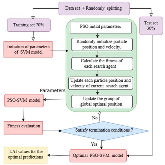 Flowchart of improved SVM model (PSO-SVM) for LAI in this study.