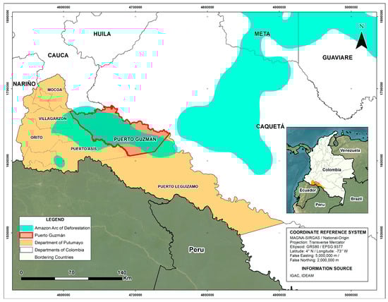 Study area: Putumayo region and arc of deforestation in the municipality of Puerto Guzmán.