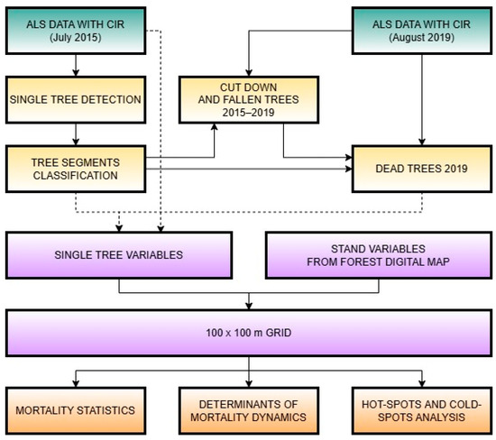 - Kamińska, A.; Lisiewicz, M.; Stereńczak, K.; Kraszewski, B.; Sadkowski, R. Species-Related Single Dead Tree Detection Using Multi-Temporal ALS Data and CIR Imagery. Remote Sens. Environ. 2018, 219, 31–43. [Google Scholar] [CrossRef]