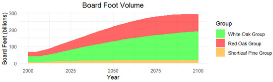Predicting Timber Board Foot Volume Using Forest Landscape Model and Allometric Equations Integrating Forest Inventory Data